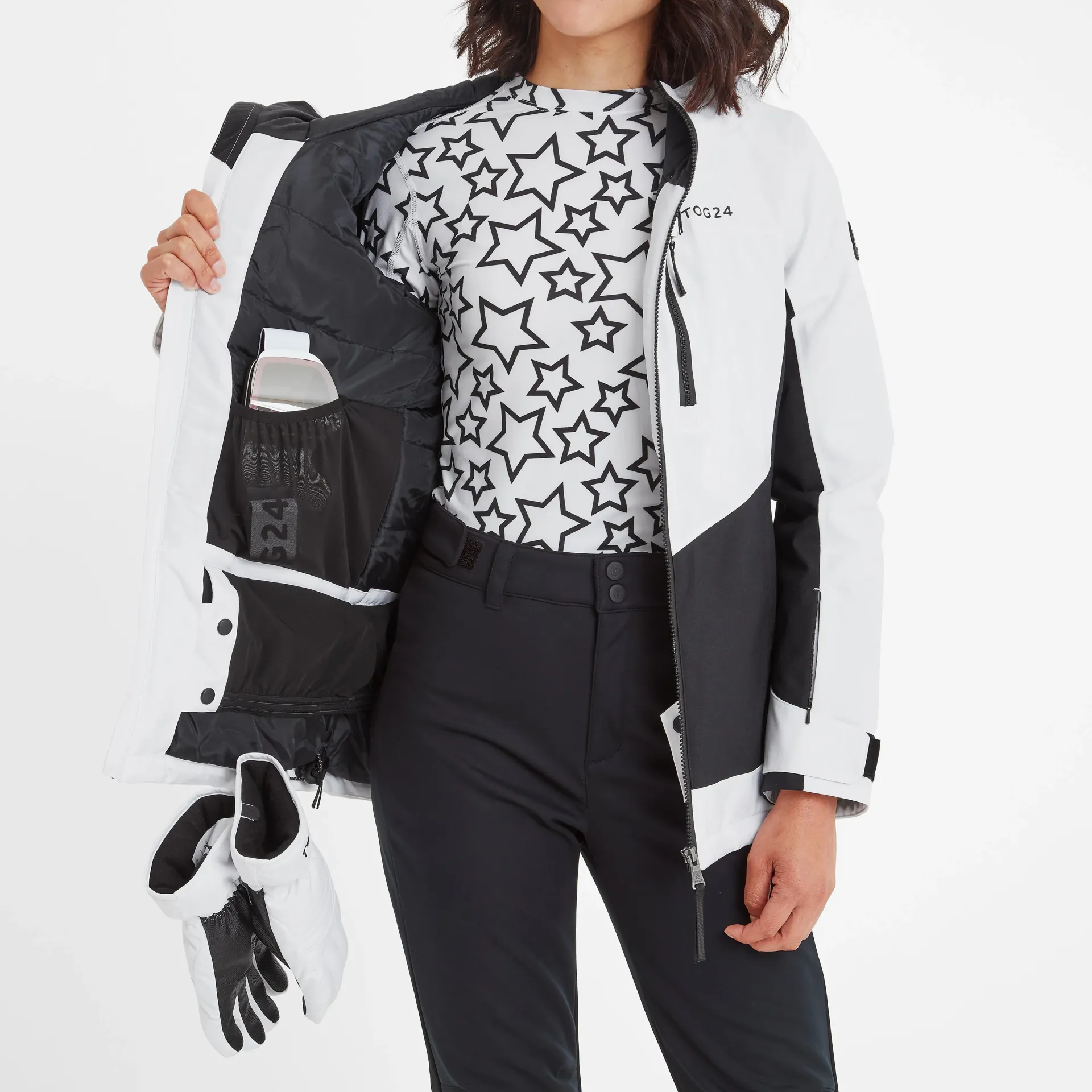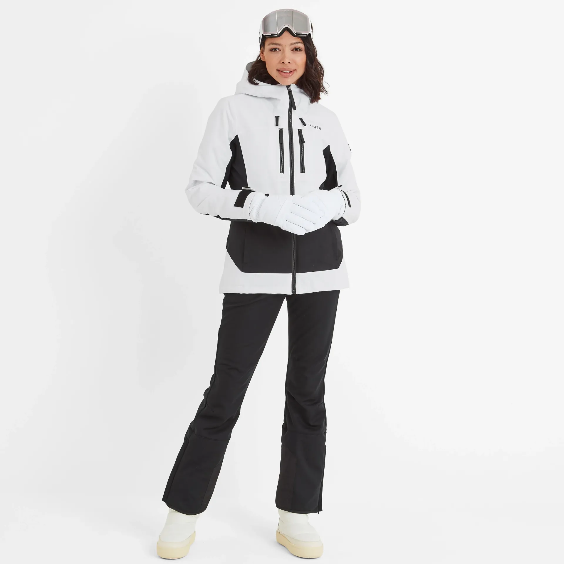 Product DescriptionWhen it comes to skiwear, Montana is our most premium option. Made from the finest weather-resisting materials, with taped seams, a water repellent coating and a warm insulated fill , the Montana jacket will keep you warm, impeccably dry and comfortable. The stylish colour block design will keep you looking great whilst also protecting you from all of the elements. Featuring practical essentials including snow cuffs and a snowskirt to keep the wind and snow out, a D-ring to attach your gloves to, an inner mesh pocket for storing your goggles, and four zip pockets on the front for storing your valuables, one of them including a goggle wipe attached to the inside. It also has a pocket on the sleeve to store your ski pass, allowing you to easily scan it without removing it when on the go. Montana’s helmet-compatible hood, deep neck and high collar offers supreme protection and the fused hood peak and hood adjusters give you even more protection against the elements. The jacket includes eFeaturesWaterproof (10K), Breathable (10K), and WindproofPolyester FillingFully taped seamsWater repellent coating (DWR)Durable fabric with colour block panelsFixed hood with shaped and fused hood peakChunky easy grab adjusters on the hood, hem and cuffsFull length zip with glove-friendly puller2 chest pockets, 2 Lower zip pockets, 1 sleeve zip pocket for ski passSki features include; snow cuffs, 1 inner mesh goggle pocket, ski goggle wipe, glove ringSnowskirt has a gel print on the edge for grip and a DWR finish – this is not removeable.TOG24 badge on sleeve u0026amp; logo print on chestFitStudio model Melissa is wearing size 8 and is 5’10