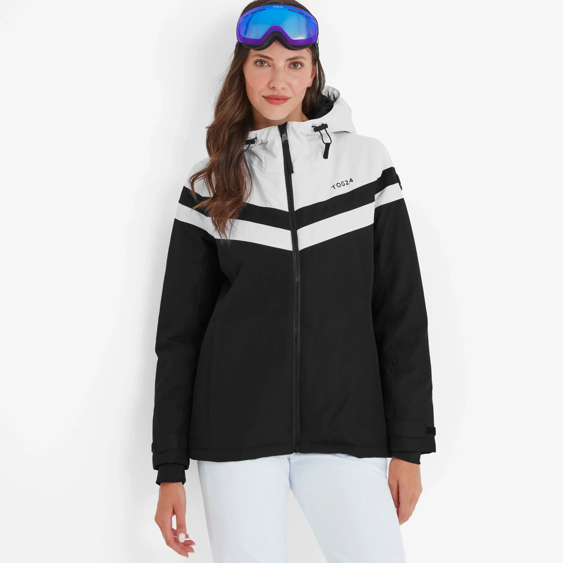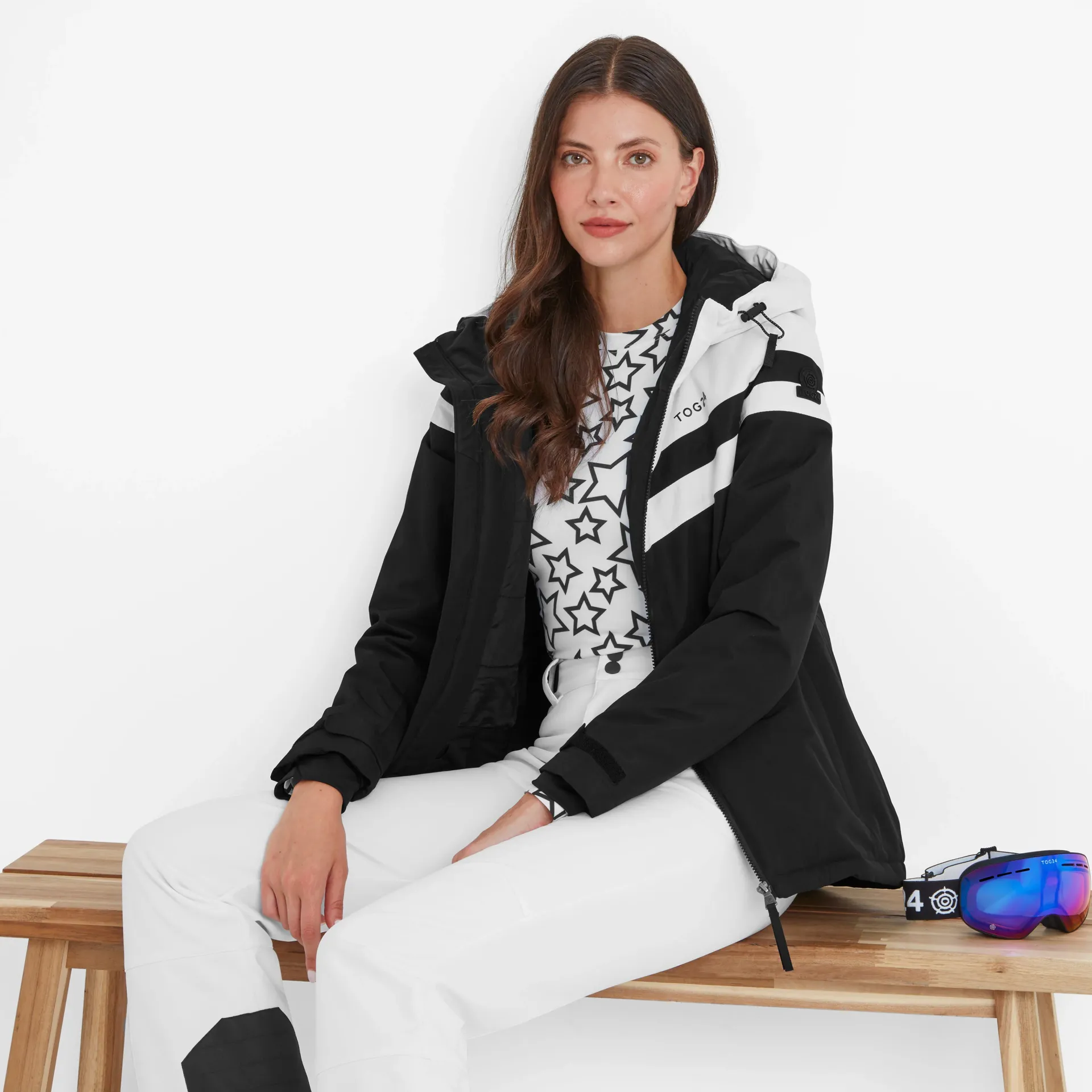 Product DescriptionDesigned for enduring the snowy conditions, Panorama is tough and durable, fully waterproof and windproof, which helps to keep you warm and comfortable from the second you hit the slopes. With its eye-catching colour-block design and water repellent coating, this jacket is both stylish and practical. Its insulating filling offers great warmth, ideal for the cold weather. Panorama features a fixed, adjustable and helmet-compatible hood with a shaped peak for added protection, and chunky easy-grab adjusters on the hood, hems so you can adjust your jacket even when wearing ski gloves. Plus, Panorama includes a waterproof snowskirt with a gel print edge for grip and snow cuffs to keep the cold out. Featuring a ski pass pocket which allows you to scan your pass without removing it from your pocket, two zip outer pockets, and an inner pocket with a ski goggle wipe attached you’ll have plenty of pockets to store your belongings. At the hem there’s also a d-ring to clip your gloves to when on FeaturesWaterproof (10K), Breathable (10K), and WindproofPolyester FillingFully taped seamsWater repellent coating (DWR)Durable fabric with colour block panelsFixed hood with shaped and fused hood peakChunky easy grab adjusters on the hood, hem and cuffsFull length zip with glove-friendly puller2 Lower zip pockets, 1 inner zip pocket, 1 sleeve zip pocket for ski passSki features include; snow cuffs, ski goggle wipe attached to inside of chest pocket, glove ringSnowskirt has a gel print on the edge for grip and a DWR finish – this is not removeable.TOG24 badge on sleeve u0026amp; logo print on chestFitStudio model Mayara is wearing size 8 and is 5’11