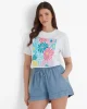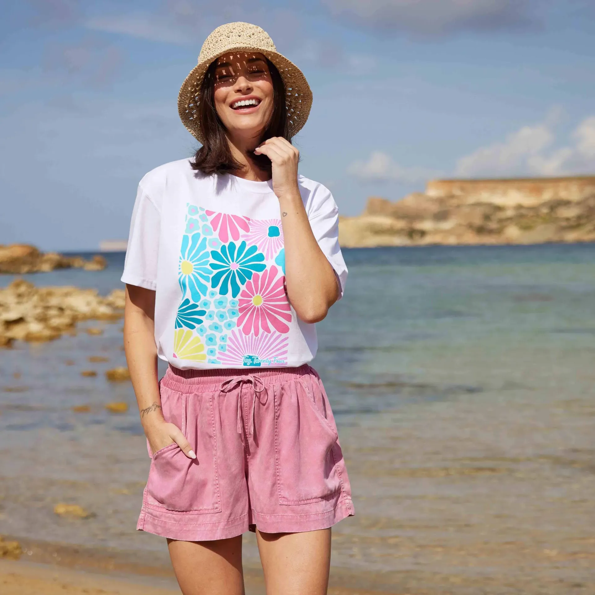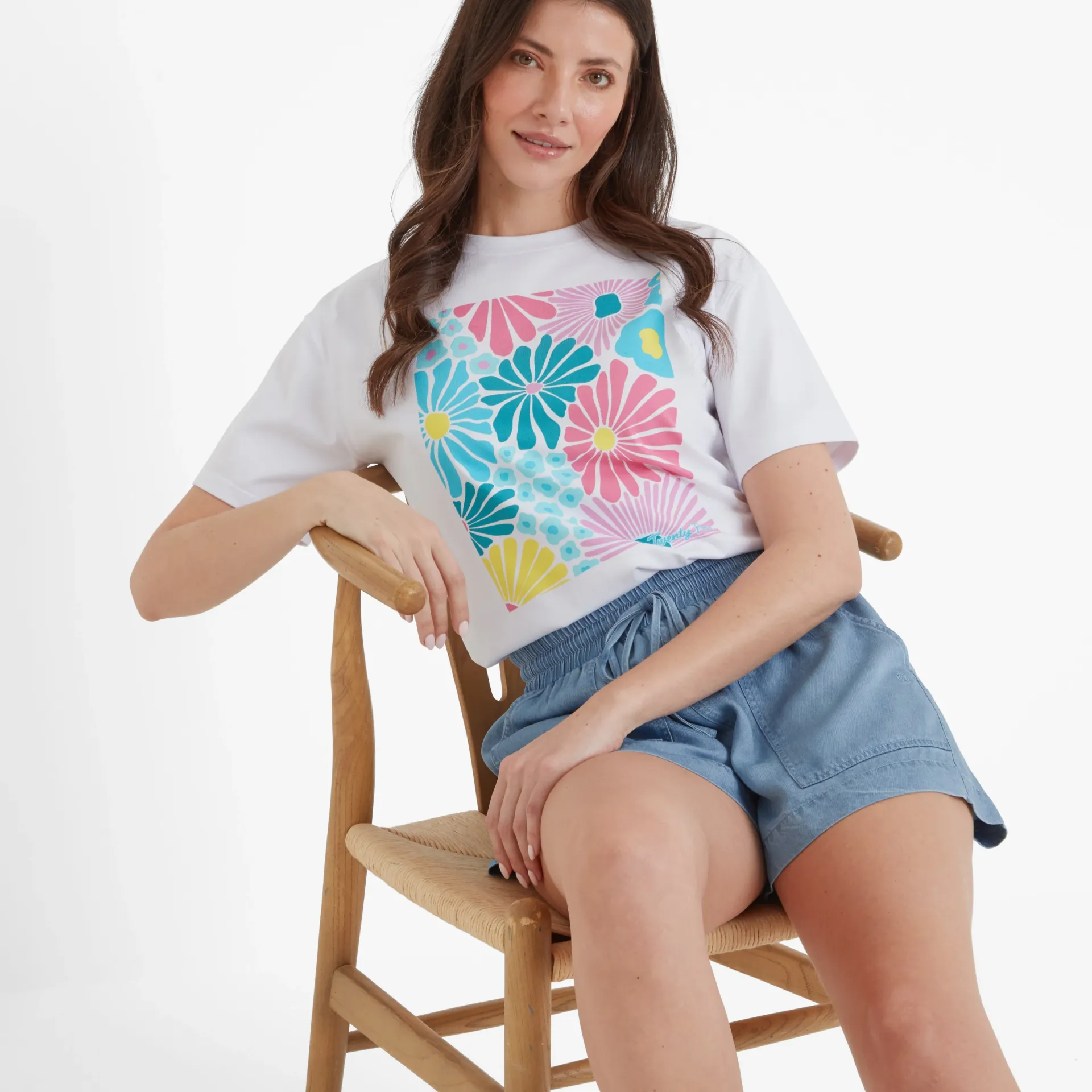 Clearance*This product is excluded from all additional promo code discountsProduct DescriptionThe Trissy printed T-shirt brings bold style and everyday comfort to your wardrobe. Made from premium heavyweight jersey fabric, it feels supersoft and durable, making it perfect for all-day wear. The T-shirt features a relaxed, boxy silhouette with dropped shoulders and short sleeves, giving it a laid-back fit that’s ideal for casual days. The straight hem adds to its easy-going vibe, making it a versatile choice for different outfits. The large tropical flower graphic on the chest adds a vibrant splash of colour and personality, instantly brightening up your look. Pair it with denim shorts and sandals for a classic summer vibe, or layer it under a lightweight jacket with joggers for laid-back weekends. Finished with a ribbed crew neck and a TOG24 label at the hem, the Trissy T-Shirt is a true summer staple that combines standout style with everyday ease.FeaturesSUPERSOFT TEEPREMIUM HEAVYWEIGHT JERSEY FABRICDROPPED SHOULDERSHORT SLEEVESSTRAIGHT HEM AND RELAXED FITRIB CREW NECKLARGE GRAPHIC PRINT TO CHESTTOG24 LABEL ON THE HEMFitStudio model Mayara Dress 8 UK, Height 5’11