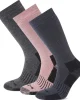 Black November EventGet an extra 15% off this product – automatically applied at checkoutCannot be used in conjunction with any other discountsProduct DescriptionVillach hiking socks offer supreme comfort and protection for your foot. Made from a merino blend fabric and with cushioning across the whole sock offering all round protection, these socks will ensure that rubbing and blistering is kept to a minimum so you can focus on enjoying your walk. Additional comfort features include a non-slip grip cuff that will keep your socks firmly in place, a re-inforced toe and heel section on each sock, elastic arch support and a flat toe seam to keep them comfy against the front of your shoe or boot. These socks come in a handy 3 pack and a variety of colours, so you’ll never be without a great pair of hiking socks!FeaturesMerino blend sockHeavy cushioningNon-slip grip cuffRe-inforced toe u0026amp; heelElastic arch supportFlat toe seamFitS = UK 3-5 (EU 35-38)M = UK 6-8 (EU 39-42L = UK 9-11 (EU 43-46)Material Composition36% Wool, 36% Acrylic, 26% Polyamide, 2% ElastaneCareMachine wash cold, Do not tumble dry