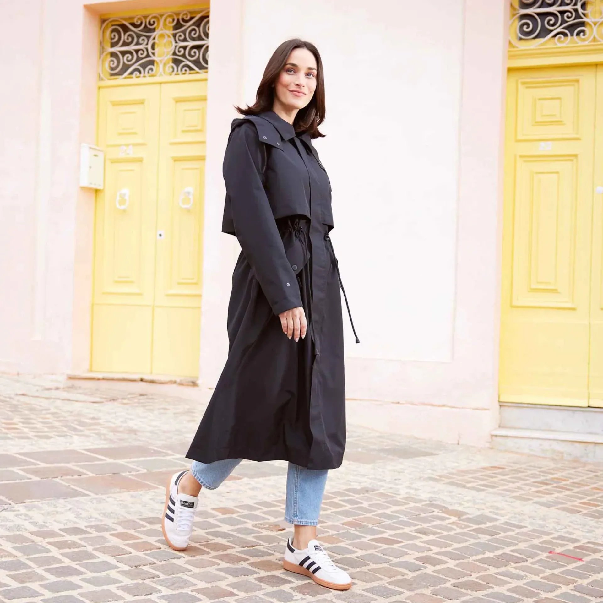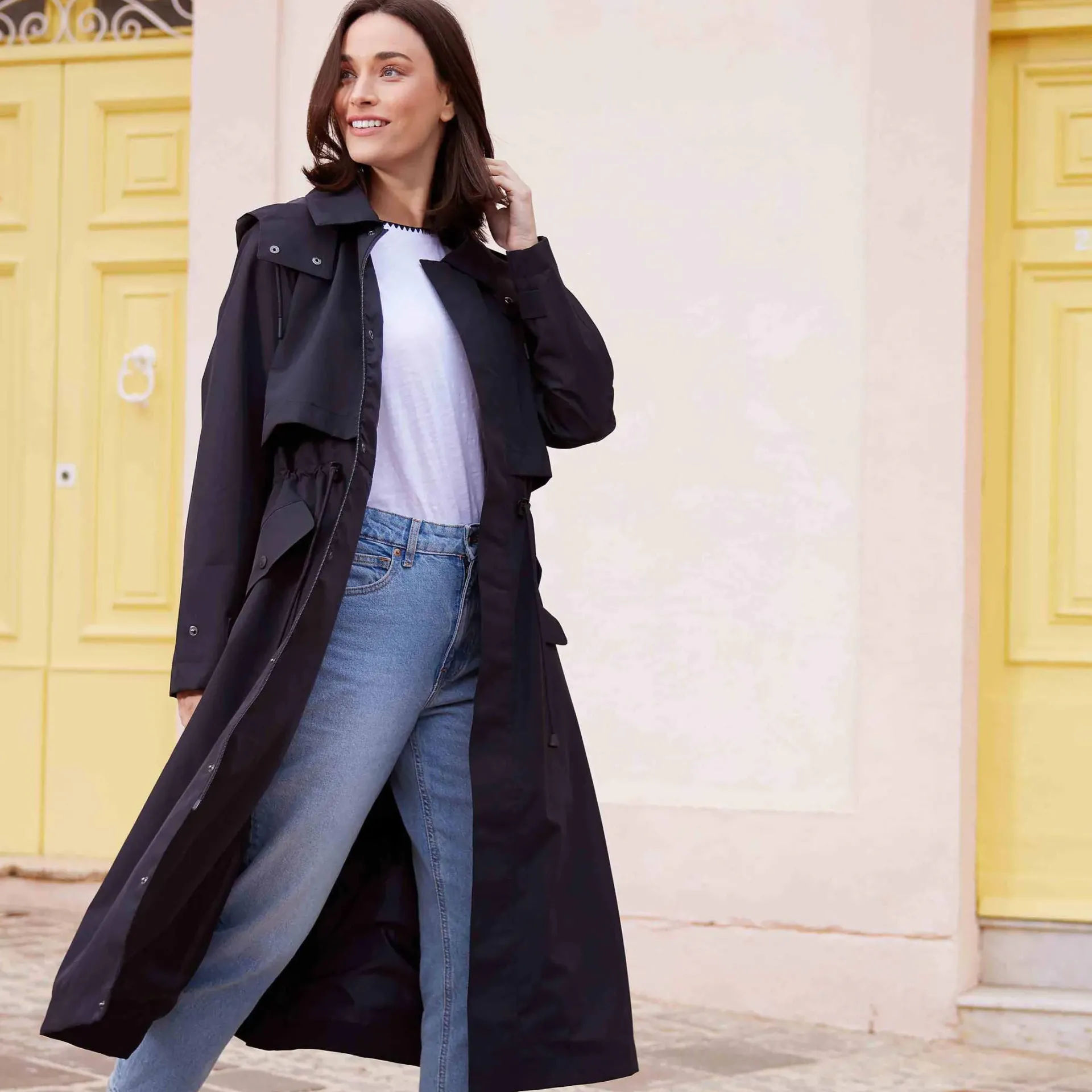 Product DescriptionWhen it comes to waterproof jackets, it doesnât get much more stylish than the Alva. Designed in the classic trench-coat silhouette, the Alva is a great looking coat that also comes with heaps of practical features. Its fully taped seams and waterproof coating ensures you keep the rain out and the warmth in, which is ideal for when the rain pours and the winds blow. Also, to ensure youâre ready for whatever the weather throws at you, the removable and adjustable hood comes complete with drawcords at the opening, while the handy two-way zip provides extra mobility. Whatâs more, the toggle adjusters on the waist offer that âcinched-inâ feel, which is both figure-flattering and great for keeping your torso toasty. With style and substance in abundance, the Alva is your trusty companion for keeping you dry and stylish in the unpredictable British weather.FeaturesWaterproof (10K), breathable (10K), and windproofFully taped seamsWater repellent coating (DWR)2 way zip opening fastened with concealed press studsRemovable hood with drawcords on hood openingToggle adjusters on waist2 lower patch pockets with press stud fasteningsPress stud cuff adjustersHem vent with concealed press studsTOG24 badge on sleeveFitStudio model Emma Dress 8 UK, Height 5’9