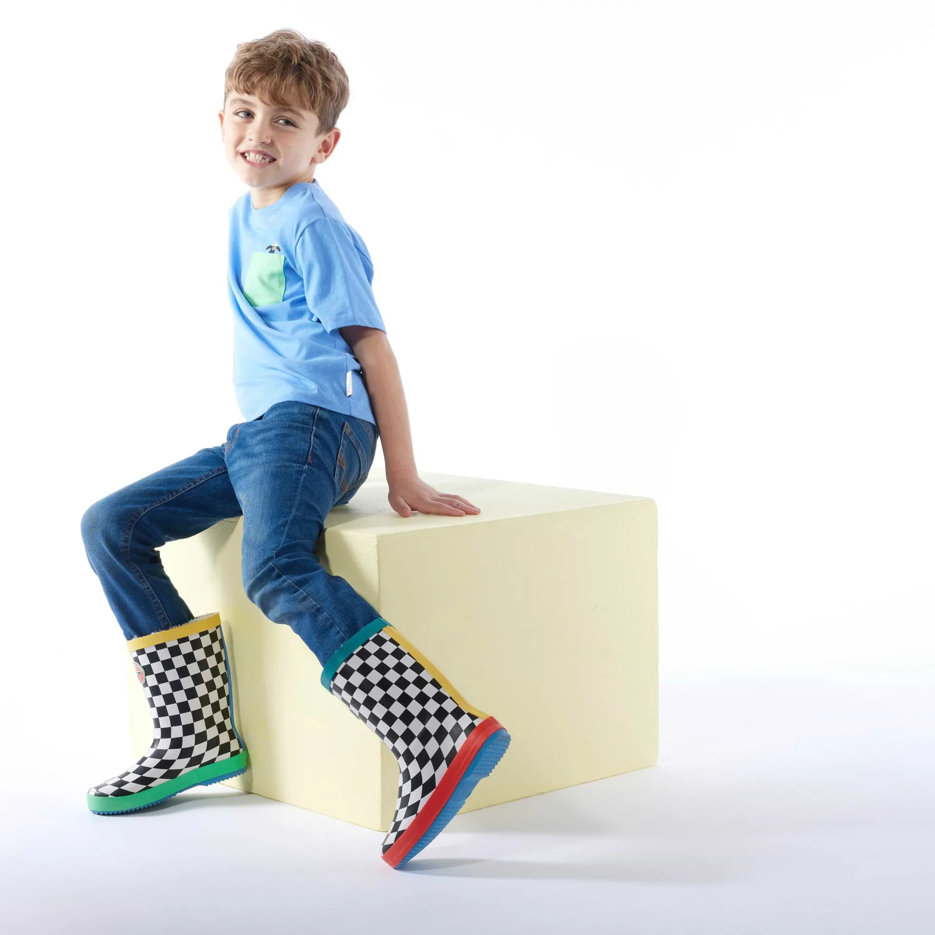 Product DescriptionEncourage your little one to have some good old puddle splashing fun with these baa-rilliant Shaun the Sheep kidsâ wellies! Part of the TOG24 X Shaun the Sheep collection, these waterproof boots feature a bold black-and-white checkerboard print and colourful top and toes that go well with any outfit – ideal for exciting days out at Mossy Bottom-like farms! Designed for little adventurers who love muddy mischief, the Border wellies keep little feet warm and cosy with a super soft fleece lining, and they’re nice and easy to put on and take off. Built to withstand hours of outdoor play time, theyâre durable and grippy, too. With the Shaun the Sheep emblem on the front, these boots are a good choice for young fans of the much-loved character and will certainly make them stand out as leader of the flock. Made for fun days out, the Border wellies will have your little one toe tapping and puddle patting right until the point it’s time to count sheep. Just pull them on and let the fun begin!FeaturesTOG24 X Shaun the Sheep collaborationWaterproof u0026amp; durableWarm fleece liningCheckerboard patternShaun the Sheep branding on the frontFitMaterial CompositionUpper: Other Materials, Lining u0026amp; Sock: Textile, Sole: Other MaterialsCareWipe clean with damp cloth.