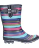 Product DescriptionWomen’s mid height boot with extra-fit adjustment at the calf. Fully waterproof rubber upper with colourful printed pattern. Practical cleated sole with stylish chunky 25mm heel. An ideal women’s festival welly, gardening boot or for walking the dog.FeaturesWomen’s mid calf wellingtonA colourful pattern adorns the upperFully waterproof constructionAdjustable extra-fit calf strap with buckle closureContrast textured rims and finishesSoft cotton and polyester blend liningRemovable EVA foam foot bedContoured and shaping heel areaRugged cleated rubber outsole with chunky 25mm heelIdeal pull on mid boot for gardening, dog walking or for use as a festival wellyFitMaterial CompositionUpper: Rubber. Lining: Cotton/Polyester. Sole: Rubber/EVA.Care