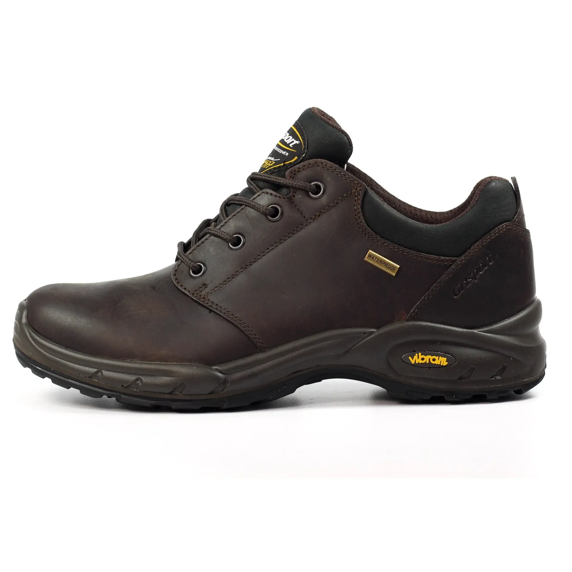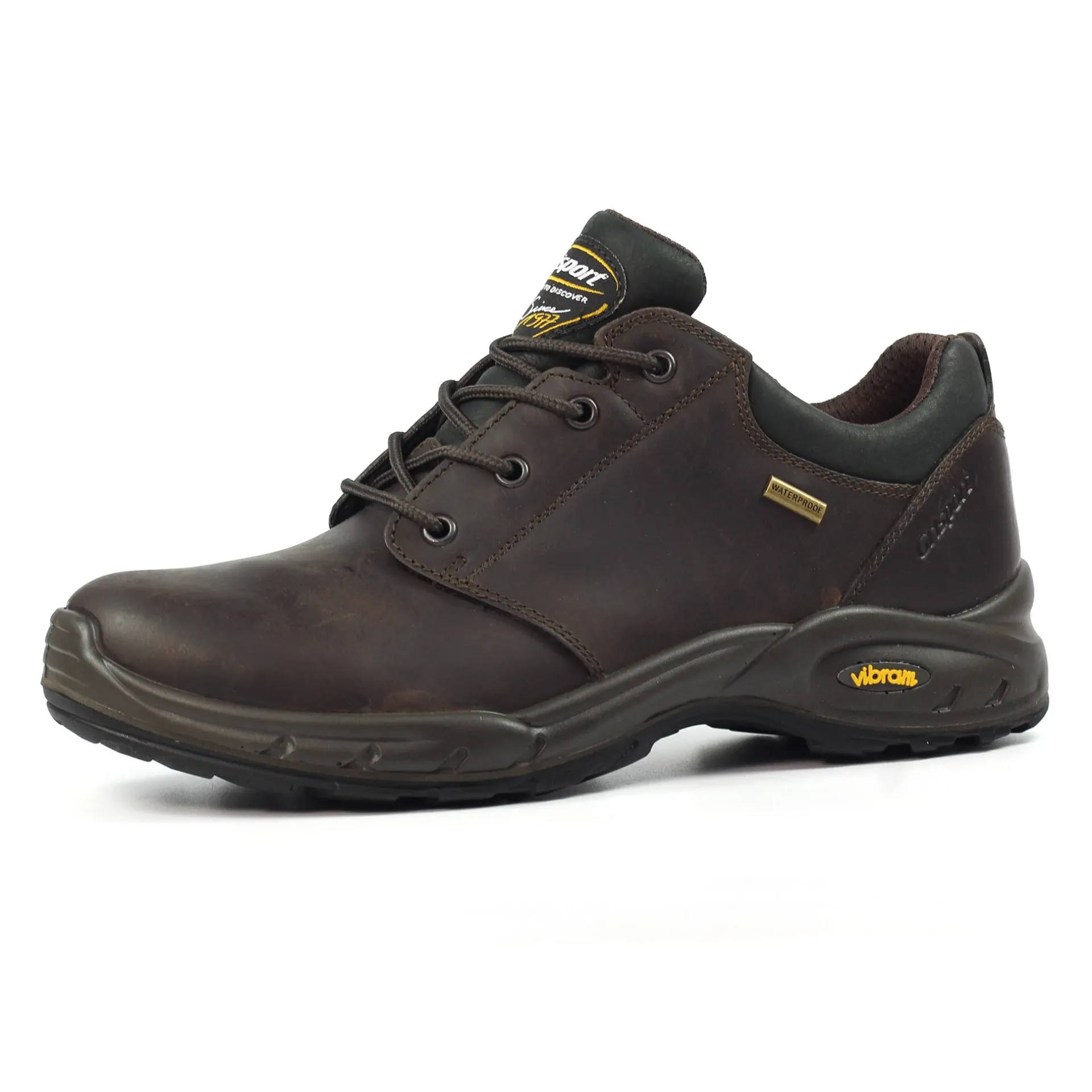 Product DescriptionBuilt from the blueprint of the original Exmoor shoe, this updated version has been improved in both looks and performance. The new ‘memory foam’ insole elevates comfort levels, while the new Vibram ‘Travel-Pro’ sole provides non-slip traction. Perfect for casual walks, travelling and daily errands.FeaturesWaterproof membrane, exceptional breathability and waterproof performanceVibram ‘Travel Pro’ rubber outsole – anti-static and non-slipWaxed 2mm ‘Dakar’ leather upperRemovable, activated carbon insole with memory foam4 eyelet ‘easy lace’ system with fitting slotPadded collar100% waterproof lacesProtective rubber toe bumperBuilt on our ergonomic ‘travel’ last, for a precision fitDual-Density mid-sole, for lightweight, all-day comfortBellows tongue – keeps out water and debrisSizes 36 – 48Weight = 880gFitMaterial CompositionWaxed LeatherCare
