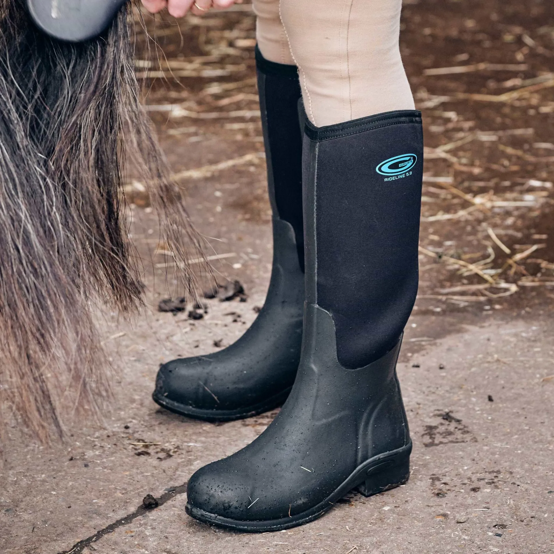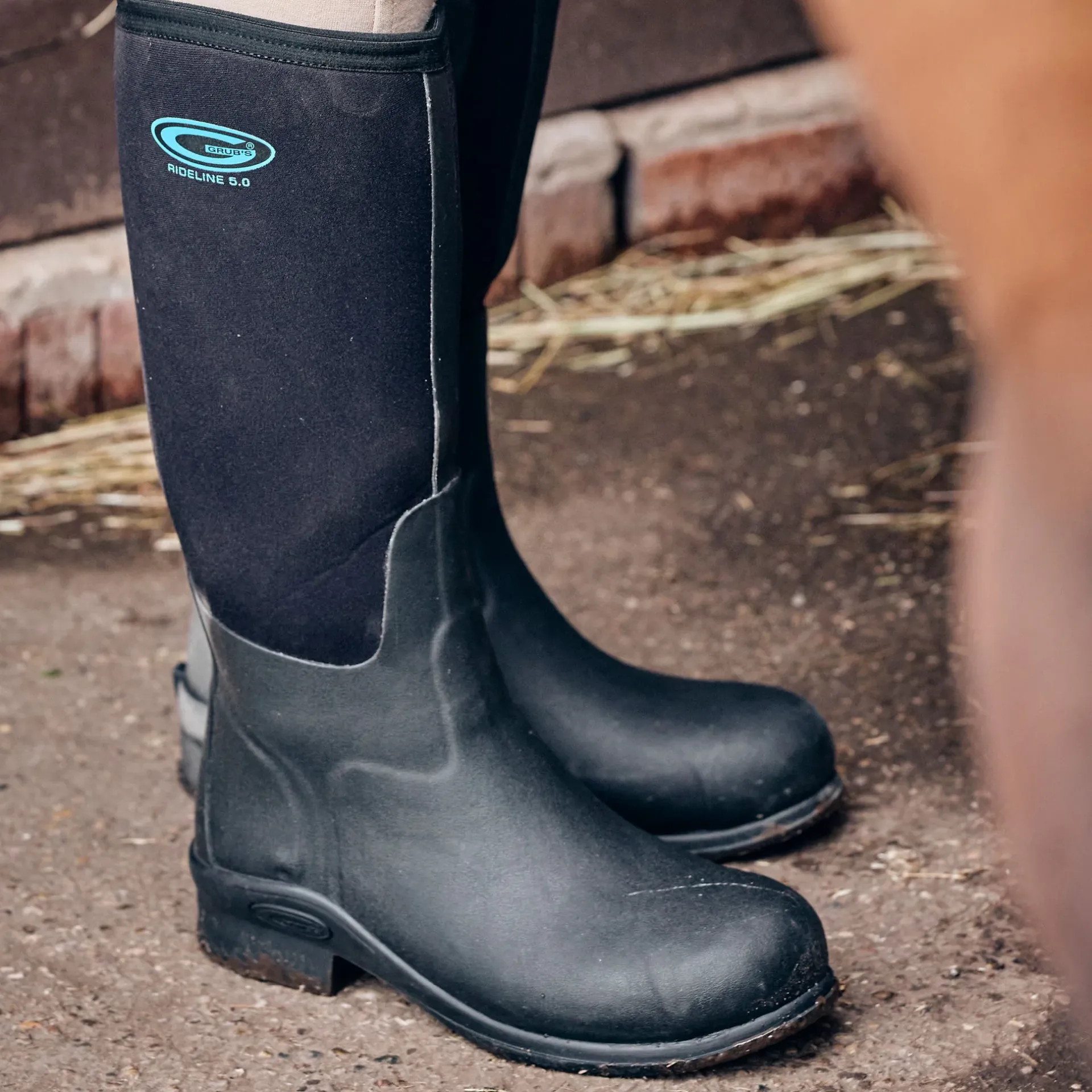 Product DescriptionGrubs RIDELINE 5.0⢠is a full height riding wellington, designed specifically for the equestrian user who want a boot that will take them from yard to stirrup. 5MM INSUFOAM-ULTRA⢠neoprene, featuring a rubber patch on the inner calf and ankle height rubber shell provides comfort and warmth. Features5MM INSUFOAM-ULTRA⢠neoprene, featuring a rubber patch on the inner calf and ankle height rubber shell provides comfort and warmth. OUTLINE⢠OUTSOLE – GRIP-GRID pad grips the stirrup for better heel position and greater control. Unique HARD TOE⢠TECHNOLOGY AND REINFORCED HEEL – reinforced toecap and ankle protects the wearerâs during daily activities. KICK SPUR – Designed to keep spurs in place and help wearer remove the boot with ease. Comfort Rating -20Âş C to +20Âş FitMaterial CompositionUpper: 60% Rubber 40% Nylon; Inner: 100% POLYESTER; Sole: 100% RubberCareBRUSH ME, WASH ME: Hose down your wellies after each use and once a month wash off excess dirt with just water and for a deep clean use water with a mild soap. Gently scrub with a soft bristle brush until your boot is clean, then leave the boots to dry naturally (not on a direct heat source).