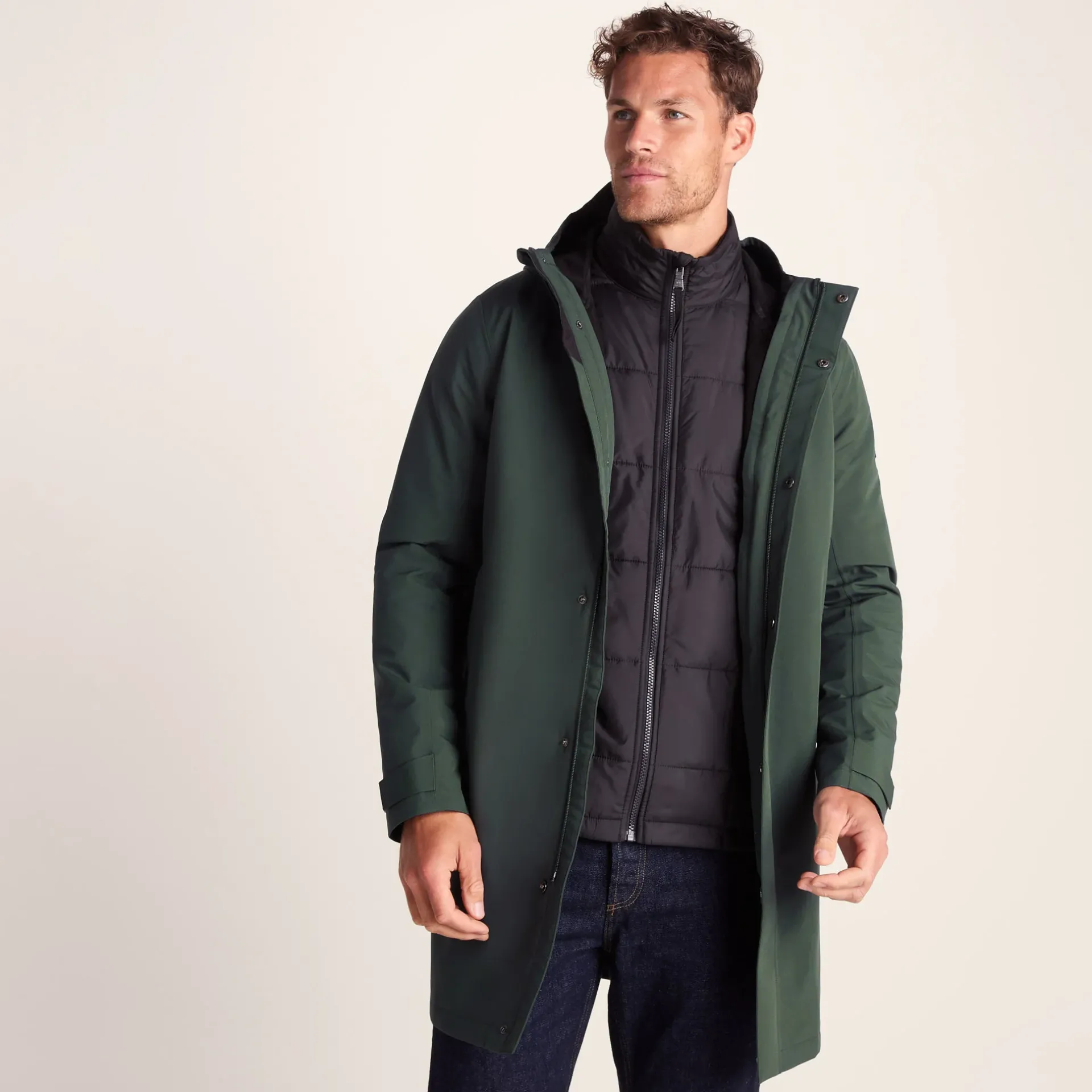 Product DescriptionIf ultimate versatility, warmth and weather protection is what youâre looking for, then youâve found it in the 3-in-1 Haydon waterproof jacket. By far one of the most practical and protective coats out there, the Haydonâs 3-in-1 design means you can tackle the elements one by one. If the rain pours, the detachable outer layer waterproof jacket with its durable 3 layer fabric, fully taped seams and water-repellent coating (DWR), along with the fixed hood with adjustable wired hood peak gives you superior protection against the rain in warmer temperatures. If the rain gives way to wind, the waterproof outer layer can be unzipped, leaving the warm, quilted, inner jacket and hood to help you stay cosy and fight off the blistery gusts. Finally, should the weatherâs mood-swings go completely haywire and throw everything at you, attach it all together for maximum protection and warmth. Whichever form the weather takes, rest assured the Haydon has your back.FeaturesOuter jacket – Waterproof (10K), breathable (10K) and windproofFully taped seamsWater repellent coating (DWR)Durable 3 layer fabricFixed hood with adjustable wired hood peakZip opening fastened with press studs, 2 Lower zip pocketsAdjusters on hood and cuffsFused hem vent with concealed press studsTOG24 badge on sleeveInner Jacket – Insulated filling made from recycled plastic bottlesZip opening to front of jacket that also zips into outer jacket, 2 lower zip pocketsLoops on cuffs and back neck to attach to outer jacketTOG24 embroidery on pocketFitStudio model Tyler is wearing size M and is 6’4