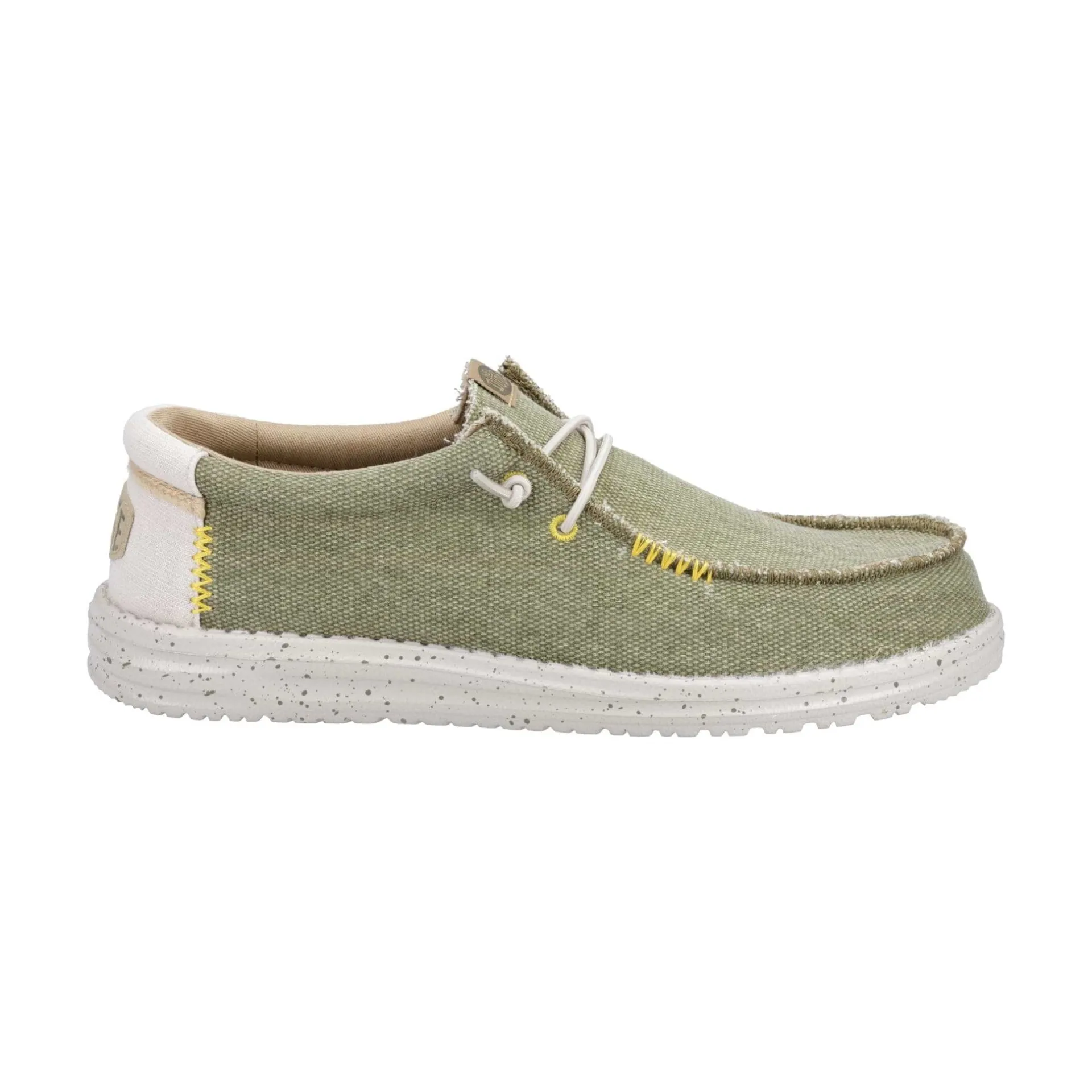 Product DescriptionDesigned for days on the dock and the deck, Wally Coastline Jute brings a two-tone, woven textile upper that is 51% recycled to cushioned support and a lightweight.FeaturesTextile upperComfort cushioned ankle collarEasy-on lace systemTravel readyEasy to washRemovable foam insoleLightweight Flexible outsoleFitMaterial CompositionUpper: Polyester/Linen/Cotton. Lining: 100% Cotton. Sole: RubberCare
