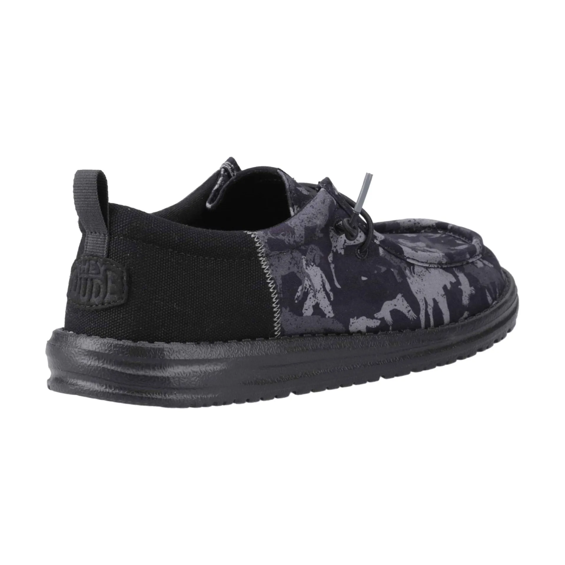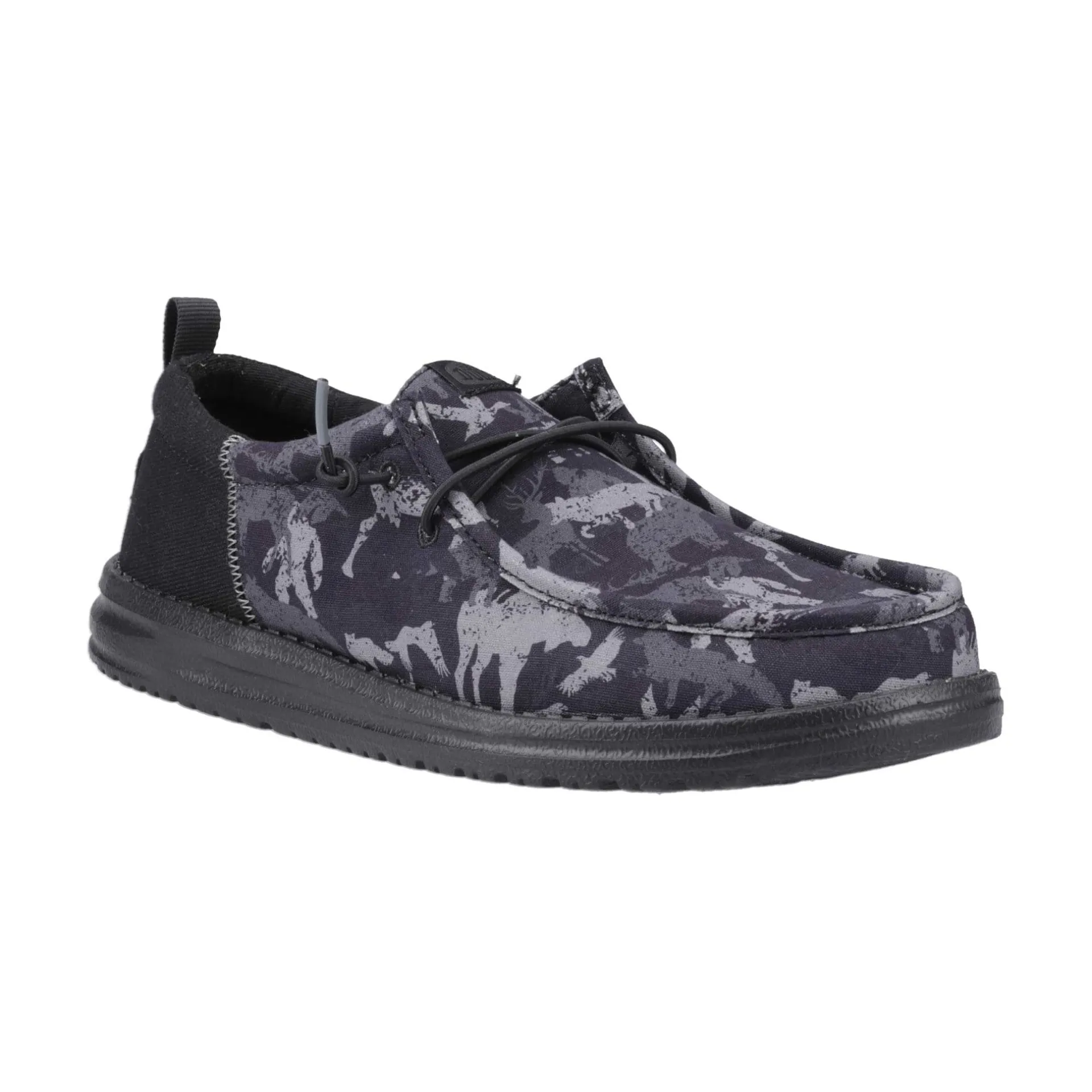 Product DescriptionThe hunt for the perfect fall shoe is over. Wally Funk Hunt Camo is giving all the outdoor vibes this season. With a sweet predator and pretty themed canvas camo upper, easy-on lace system and a removable foam insoleFeaturesPrint textile upperComfort cushioned ankle collarElastic lacesEasy-on systemTravel readyRemovable foam insoleLightweight flexible outsoleFitMaterial CompositionUpper: Canvas. Lining: Cotton. Sole: EVACare