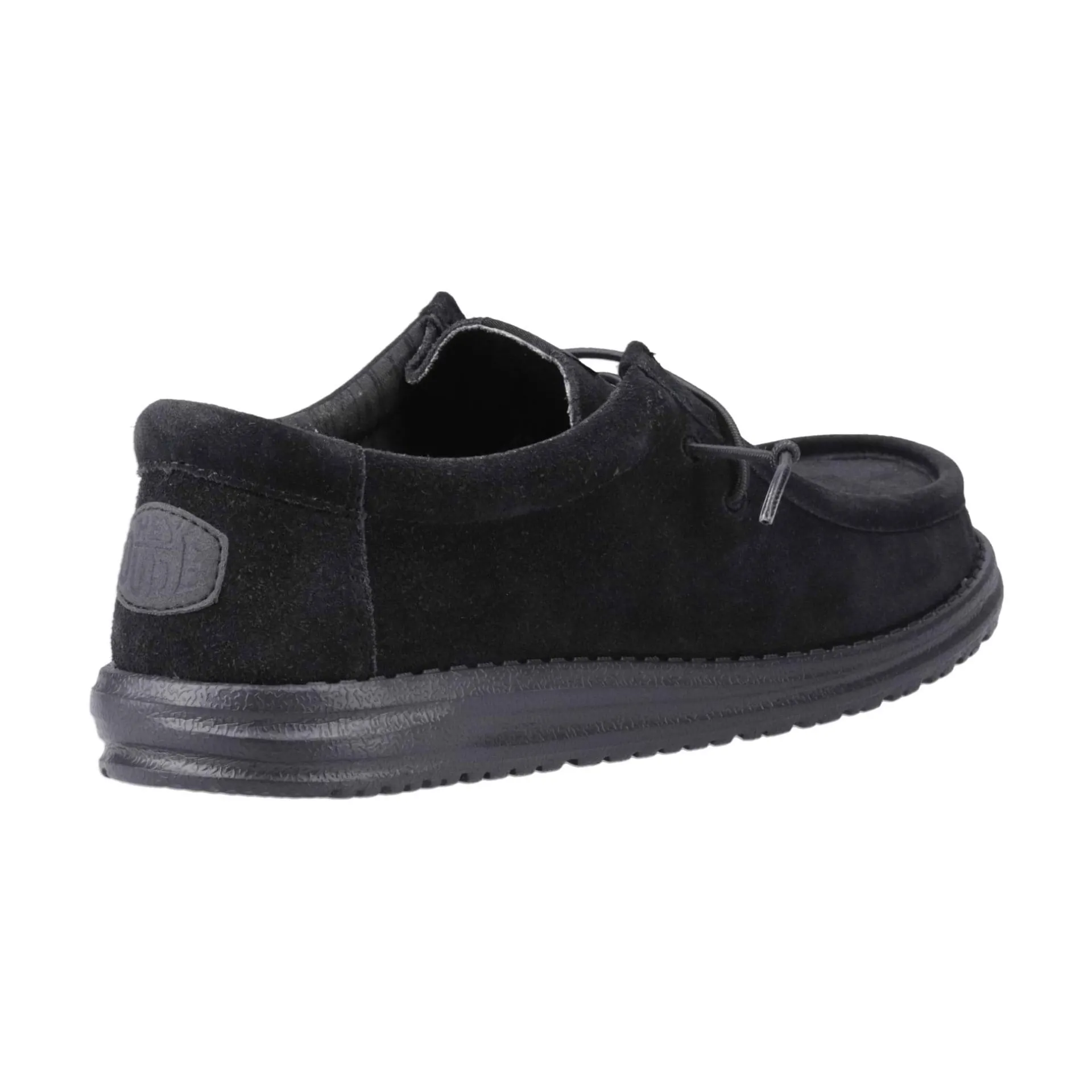 Product DescriptionIt doesn’t get more suave than suede. Day to night. Work to play. The Wally Suede elevates every look without missing a step. Premium suede, cool classic colours and all-day HEYDUDE comfort.FeaturesSuede upperUpper treated with water-repellent sprayComfort cushioned ankle collarElastic lacesEasy-on systemTravel readyRemovable foam insoleLightweight flexible outsoleFitMaterial CompositionUpper: Suede. Lining: Cotton. Sole: EVACare