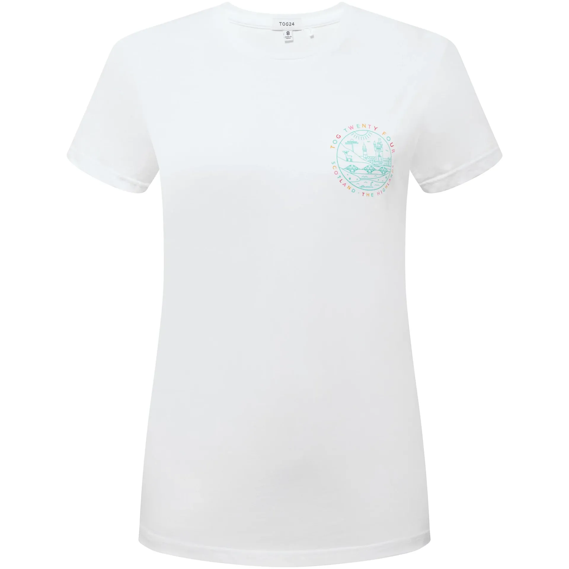 Clearance*This product is excluded from all additional promo code discountsProduct DescriptionHighland is a chic women’s t-shirt thatâs made from 100% sustainable cotton. With a comfy rib crew neck and small graphic print on the chest, it blends comfort and style. The larger graphic print on the back adds a unique touch to this tee, making it an eye-catching choice. Both graphics are inspired by the unique, wild and exciting landscape that is the Scottish Highlands.Features100% sustainable cotton teeShort sleevesRib crew neckSmall graphic print on the chestLarge graphic print on the backTOG24 label on the hemFitStudio model Paige is wearing size 8 and is 5’8