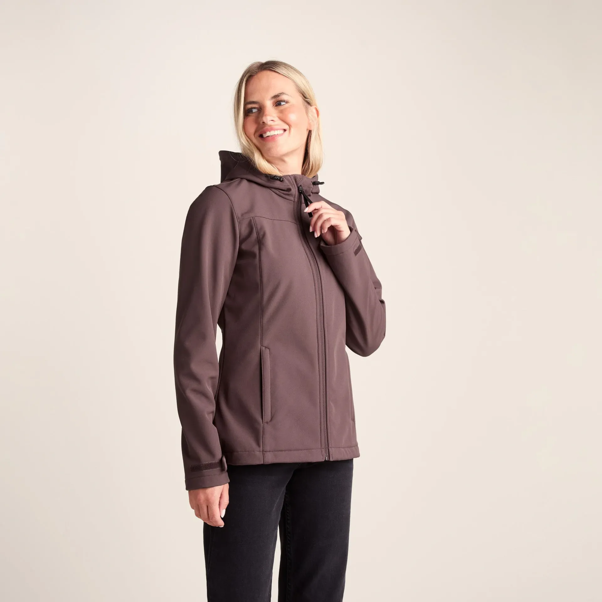 Product DescriptionSlip into this hooded softshell whenever you need a water-resistant, windproof layer that won’t slow you down. Keld gives showers the cold shoulder, while keeping body heat close to the core, thanks to the snug bonded microfleece lining. Complete with adjustable hood for extra coverage.FeaturesWater resistant, breathable, windproofBonded microfleece to inner for warmthFixed hood with adjusters, cuff adjusters2 lower zip pocketsRubberised badge to sleeve u0026amp; logo print to chestFitStudio model Izzy Dress 8 uk Height 5’7* Bust 32 Waist 26