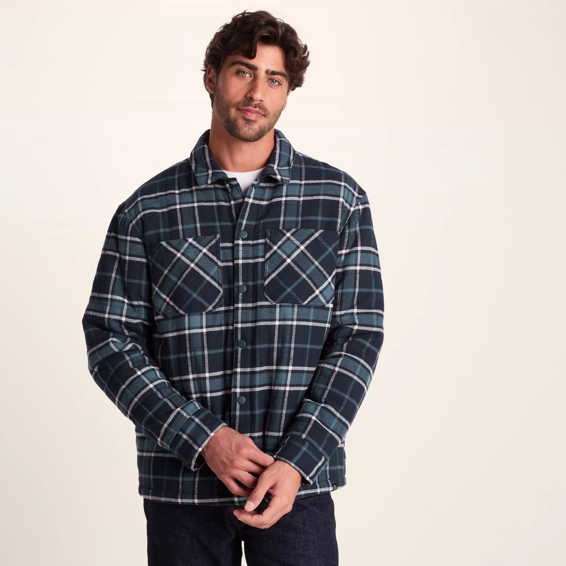 Product DescriptionIf you’re looking for that perfect in-between layer that’s as ready for action as you are, then the Kinsey men’s shacket has you covered. This isn’t just any old shirt jacket – it’s a thoughtfully designed piece that’ll keep you looking fresh and feeling comfy at the same time. On those chilly evenings when you’re off to the pub with the lads, you’ll love how the quilted brushed flannel wraps you up in just the right amount of warmth without making you overheat. The yarn-dyed check pattern across the body and sleeves of this men’s shirt jacket gives it that classic, rugged vibe, that’s just as at home in the countryside as it is in the city. Need somewhere for your phone and wallet? No worries – this shirt jacket has two chest pockets, plus there are two discreet lower pockets hidden away in the side seams for your hands or other essentials. To top it all off, the Kinsey men?ÇÖs overshirt is complete with a signature TOG24 woven label on the hem.FeaturesQuilted flannel shacketBrushed flannel fabricSquare quiltingYarn dyed check on body u0026amp; sleevesBranded press studs fasteningBranded press studs on cuffs2 Chest pockets, 2 discreet lower pockets in the side seamsTOG24 woven label on the hemFitStudio model Guilerme is wearing size M and is 6?2.5