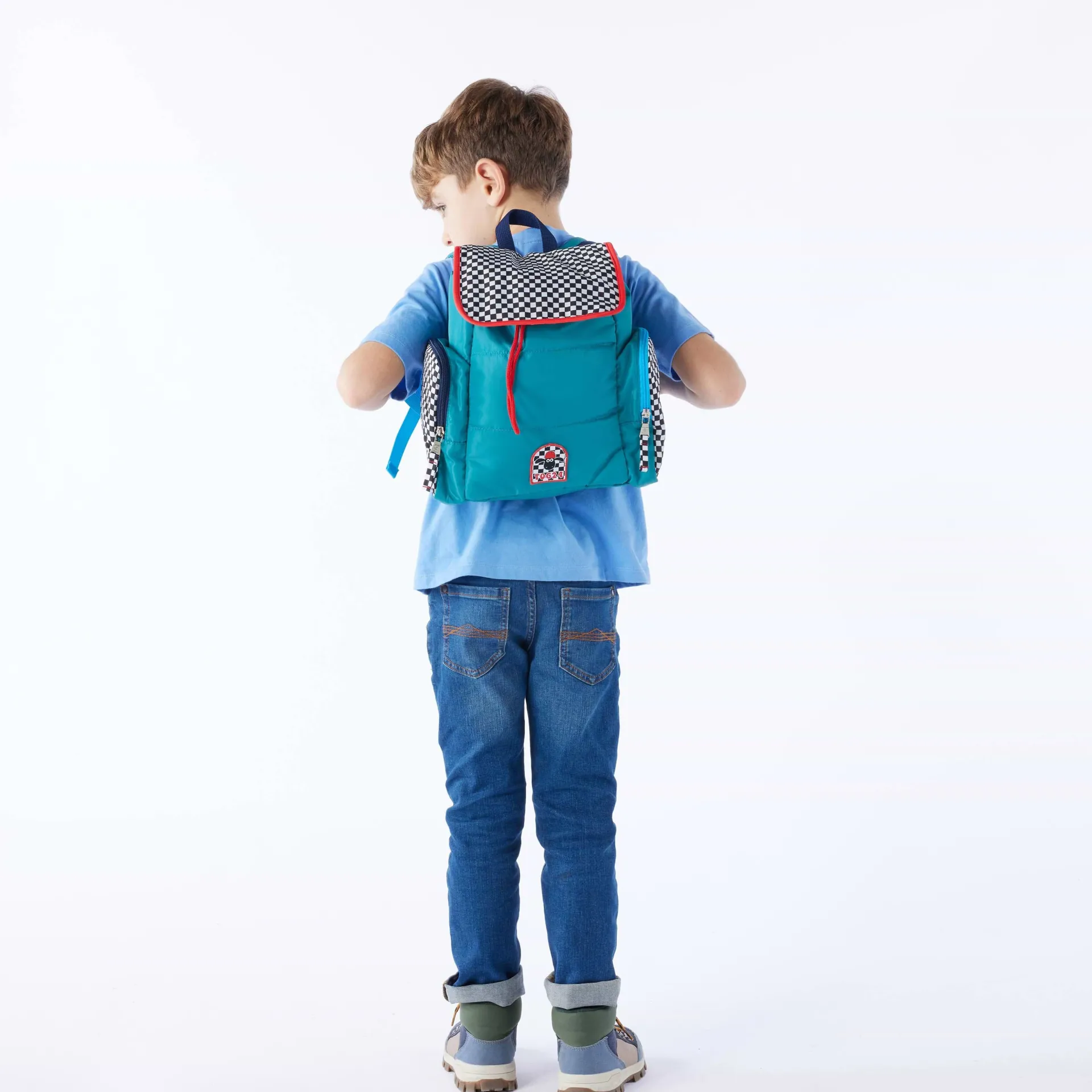 Product DescriptionMeet the Marco Backpack, the perfect companion for your little oneâs wild escapades, new from our TOG24 X Shaun the Sheep collection. It brings that mischievous Shaun-style fun to every journey, whether they’re heading back to school or setting off into the great outdoors.rnDesigned to withstand every twist, turn, and tumble your tiny tot throws its way, the Marco backpack is a colourful piece that will quickly be the talk of the playground. The playful black and white checkerboard panels, alongside the contrast zippers and the eye-catching TOG24 X Shaun the Sheep emblem, add a cheeky dash of personality, and it’s packed with clever features too! The main pocket closes securely with a magnetic fastening and drawcord, while the two zip-side pockets are perfect for stashing all the random bits and bobs that theyâll pick up throughout the day. Donât forget the Shaun the Sheep name label on the inside, which is essential for making sure their backpack never gets lost in the flock!rnComfoFeaturesTOG24 X Shaun the Sheep collaborationQuilted back packContrast checkerboard panelsMain section fastens with drawcord and magnet2 Outer zip pocketsPadded strapsDurable grab handle at the topShaun the Sheep branding on the front u0026amp; strapDimensions: W 22cm x H 25cmFitMaterial CompositionBody:100% Polyester, Lining:100% Polyester, Fill:100% PolyesterCareWipe clean with damp cloth, Specific care instuctions can be found on your garment care label