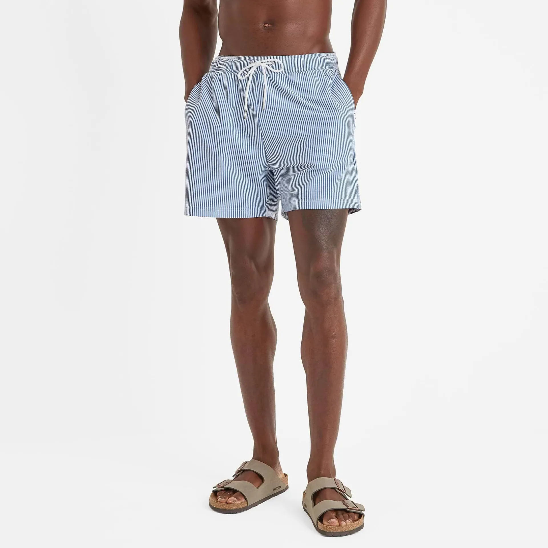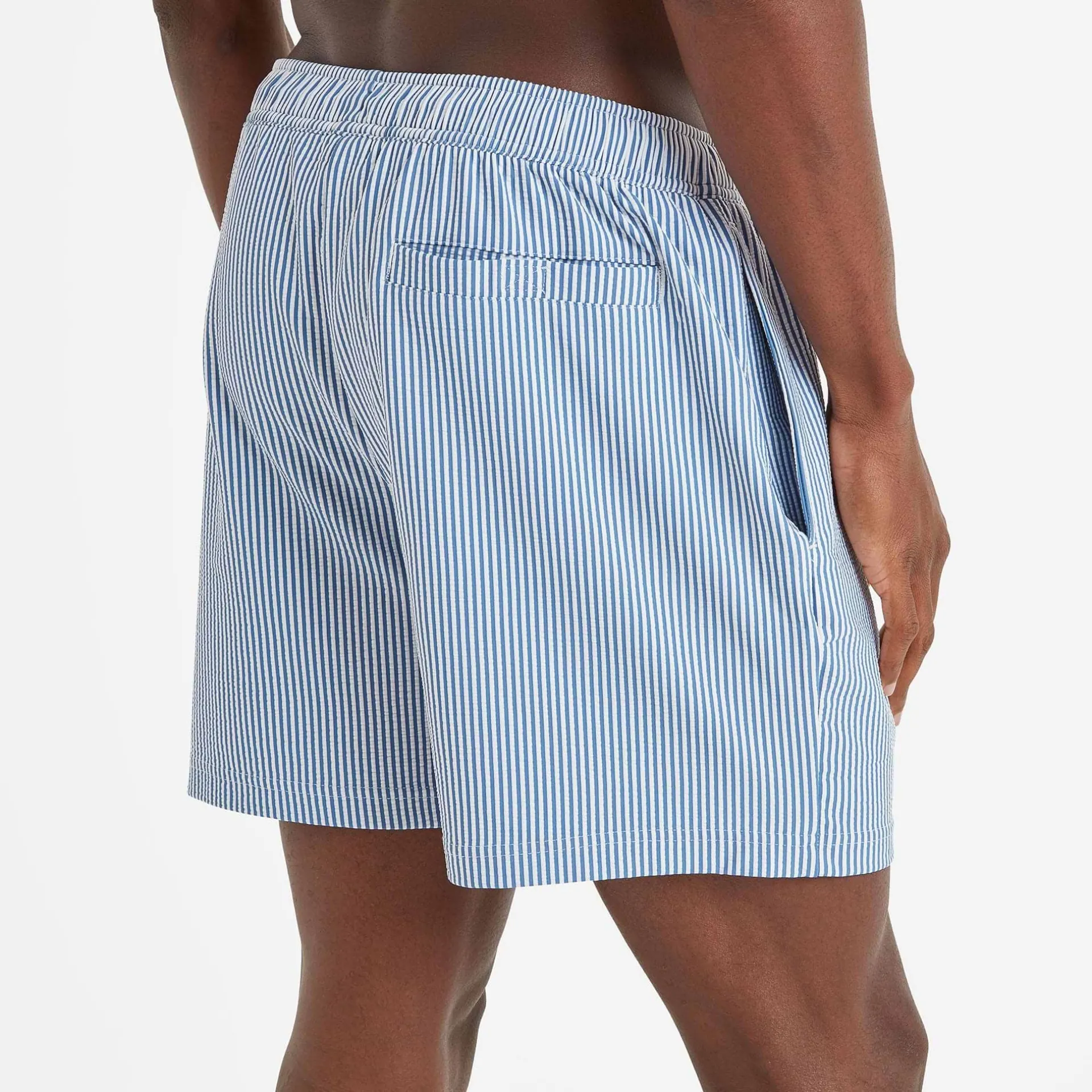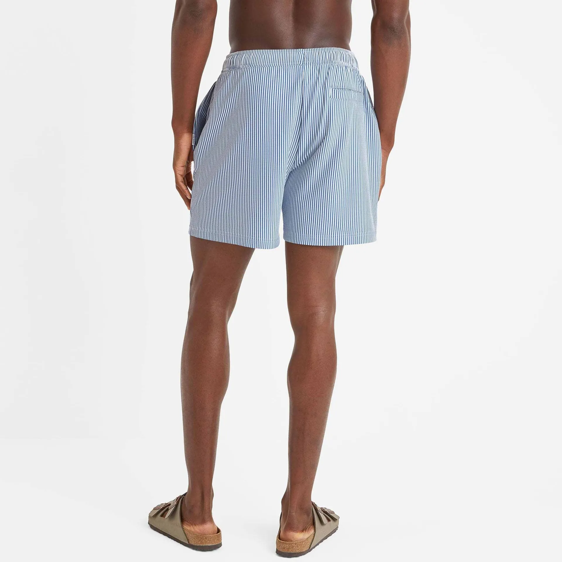 Clearance*This product is excluded from all additional promo code discountsProduct DescriptionEmbrace the waves with our Micah men’s swim shorts. These swim shorts are made from seersucker fabric and feature an elasticated waistband and drawcords for a comfortable, adjustable fit. They feature an inner mesh brief to help retain their shape, a back pocket and two hip pockets. They’re stylish, comfortable and perfect for a swim anywhere.FeaturesSeersucker fabricElasticated waistband with drawcordsInner mesh brief2 hip pockets u0026amp; 1 back pocketTOG24 label on pocket openingFitStudio model Nixon is wearing size M and is 6’1