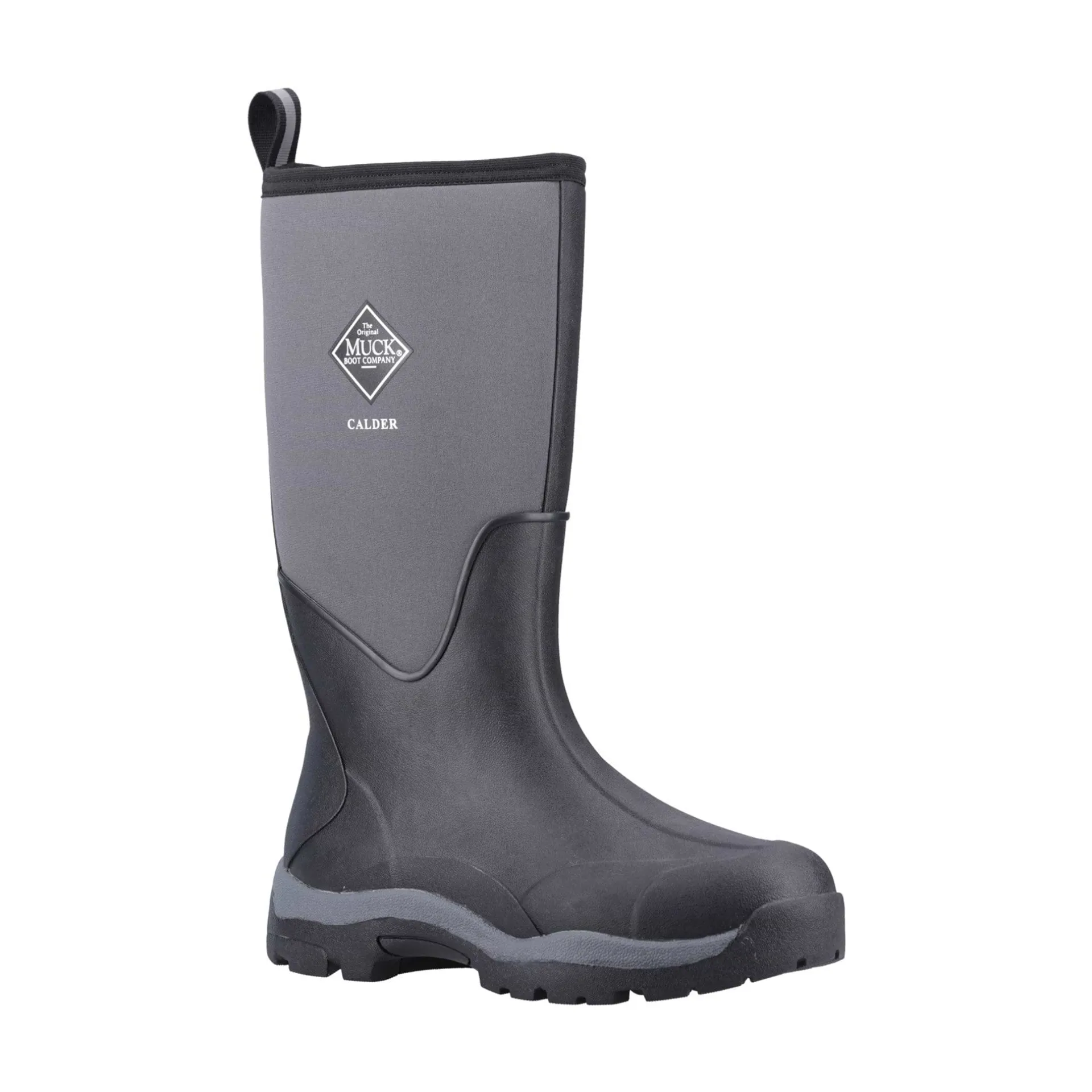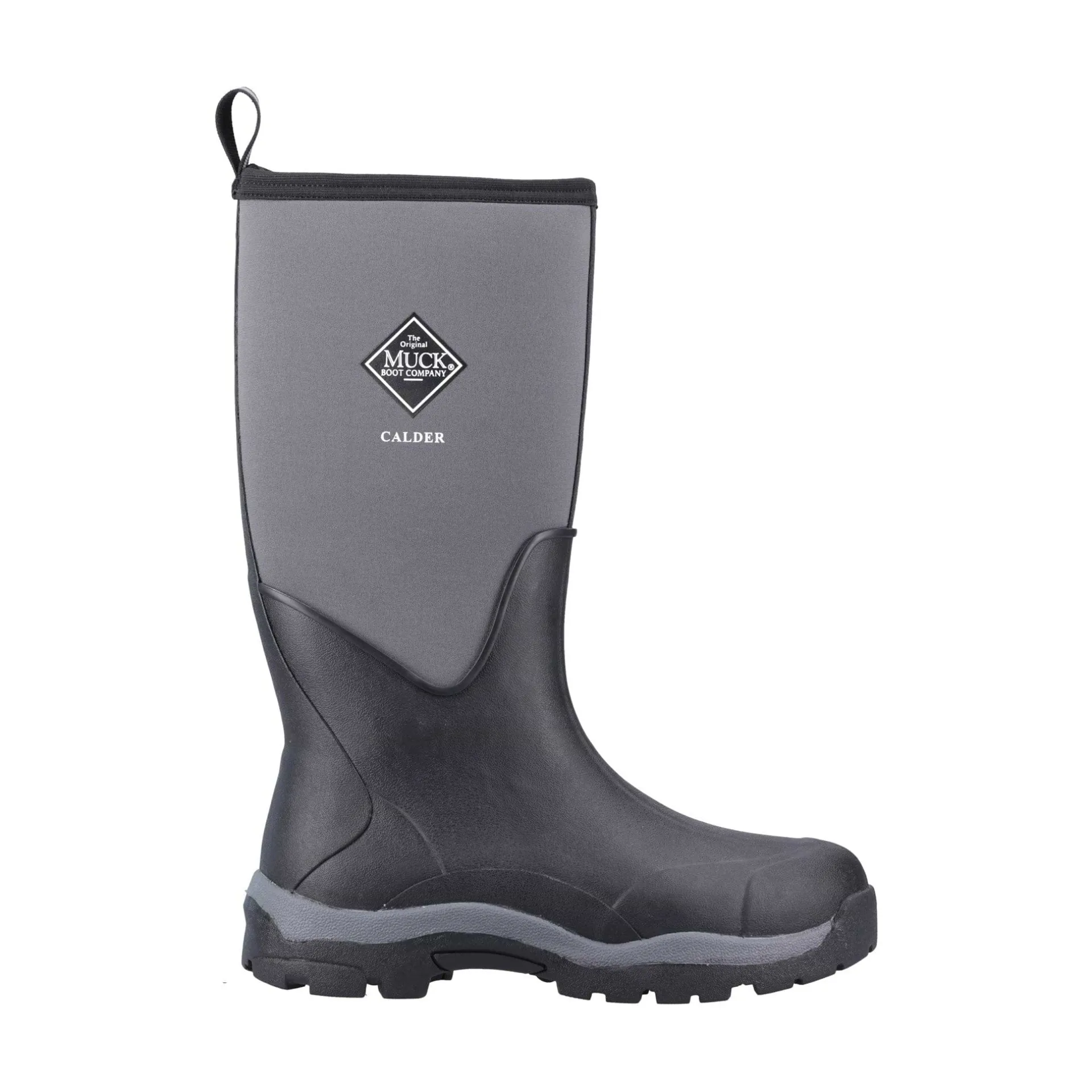 Product DescriptionMuck Boots Calder Wellingtons are built to withstand even the harshest elements, thanks to their 100% waterproof design. Say goodbye to wet feet and hello to dry comfort as you tackle rainy days and muddy terrains with confidence.Features100% Waterproof, 100% MUCKPROOF4mm neoprene bootieBreathable mesh sandwich-fabric lining improves air circulationDurable rubber outsole with quick-cleaning multi-surface traction.Triple toe and quadruple rubber heel reinforcement for more durability and extended wear.Pull tab for easy on/offFitMaterial CompositionUpper: Rubber. Lining: Fabric. Sole: Rubber.Care