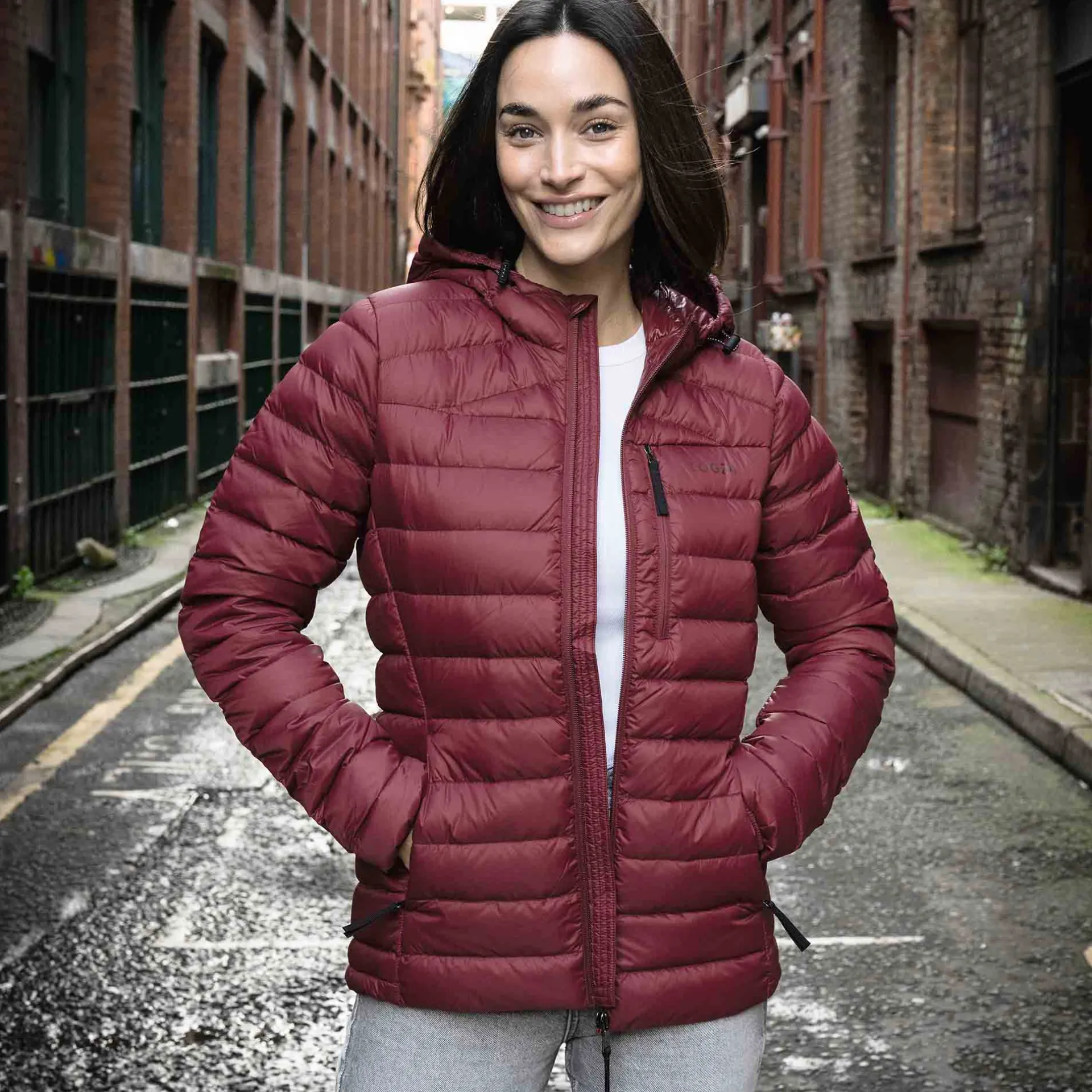 Product DescriptionSay hello to winter with the North down hooded jacket featuring duck down. If itâs high-quality and supreme warmth youâre after, then the women’s North hooded down jacket is a smart choice for those outdoor adventures. Featuring our most premium insulation made from duck down, this jacket feels toasty warm and cosy and yet equally feels breathable and lightweight. Like all great things, thereâs more to the North than meets the eye, as you wonât believe a jacket so insulated can also pack away into its own chest pocket and become a handy travel pillow, too. Thatâs because the North has been designed with the adventurer in mind, so practicality and space-saving genius is an absolute must. Complete with toggle adjusters on the hood to trap in all that wonderful warmth for your head and neck, this jacket also comes with zip side pockets to safely store your phone, wallet and keys. Layer the North over a sweatshirt on extra chilly days, or layer it under a coat for added protection from theFeatures90% duck down 10% feather, 800 fill powerLightweight, breathable u0026amp; ultra warmDown weight – 86g (based on size M)1 zip chest pocket, 2 lower zip pocketsToggle adjuster to hemJacket packs away into chest pocketLogo print on chestFitStudio model Georgia Dress 8 uk Height 5’10* Bust 34 Waist 25.5
