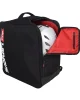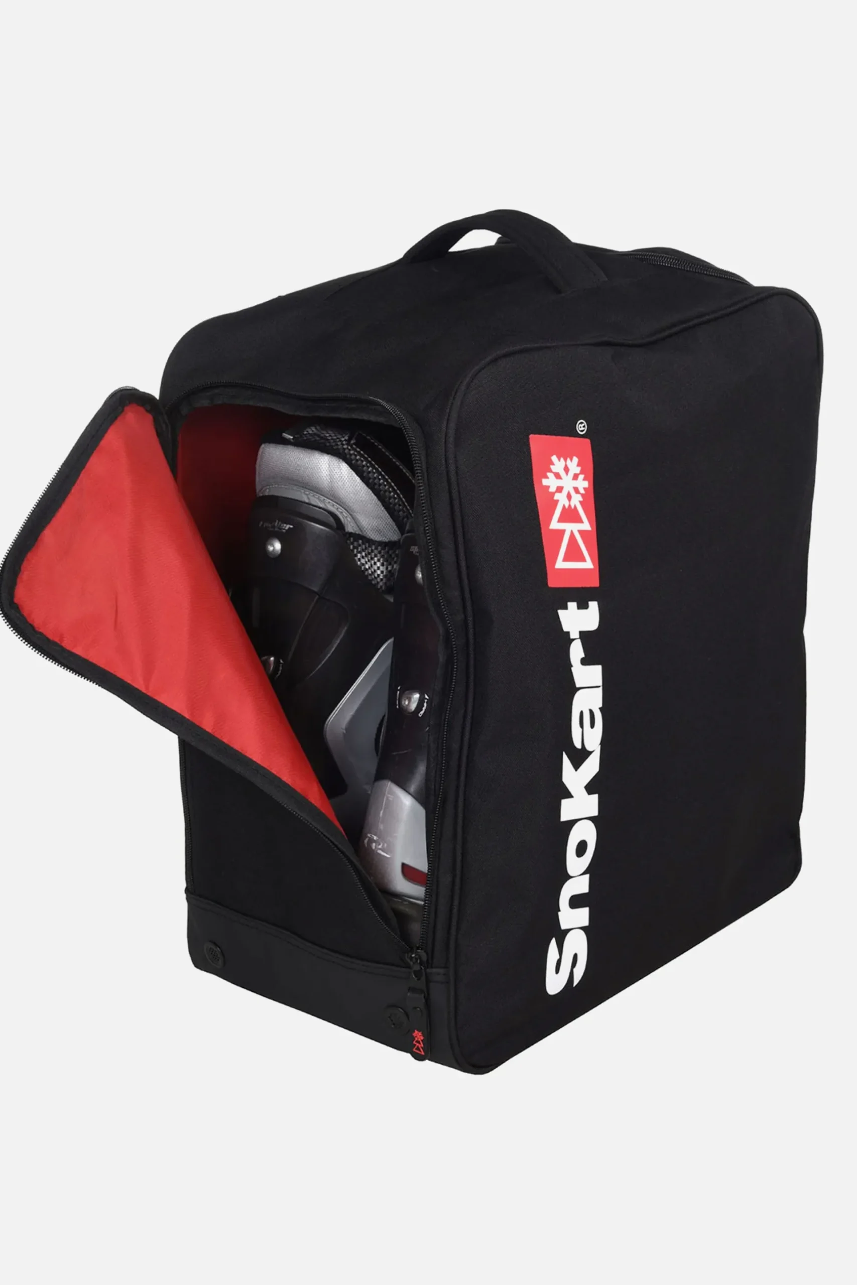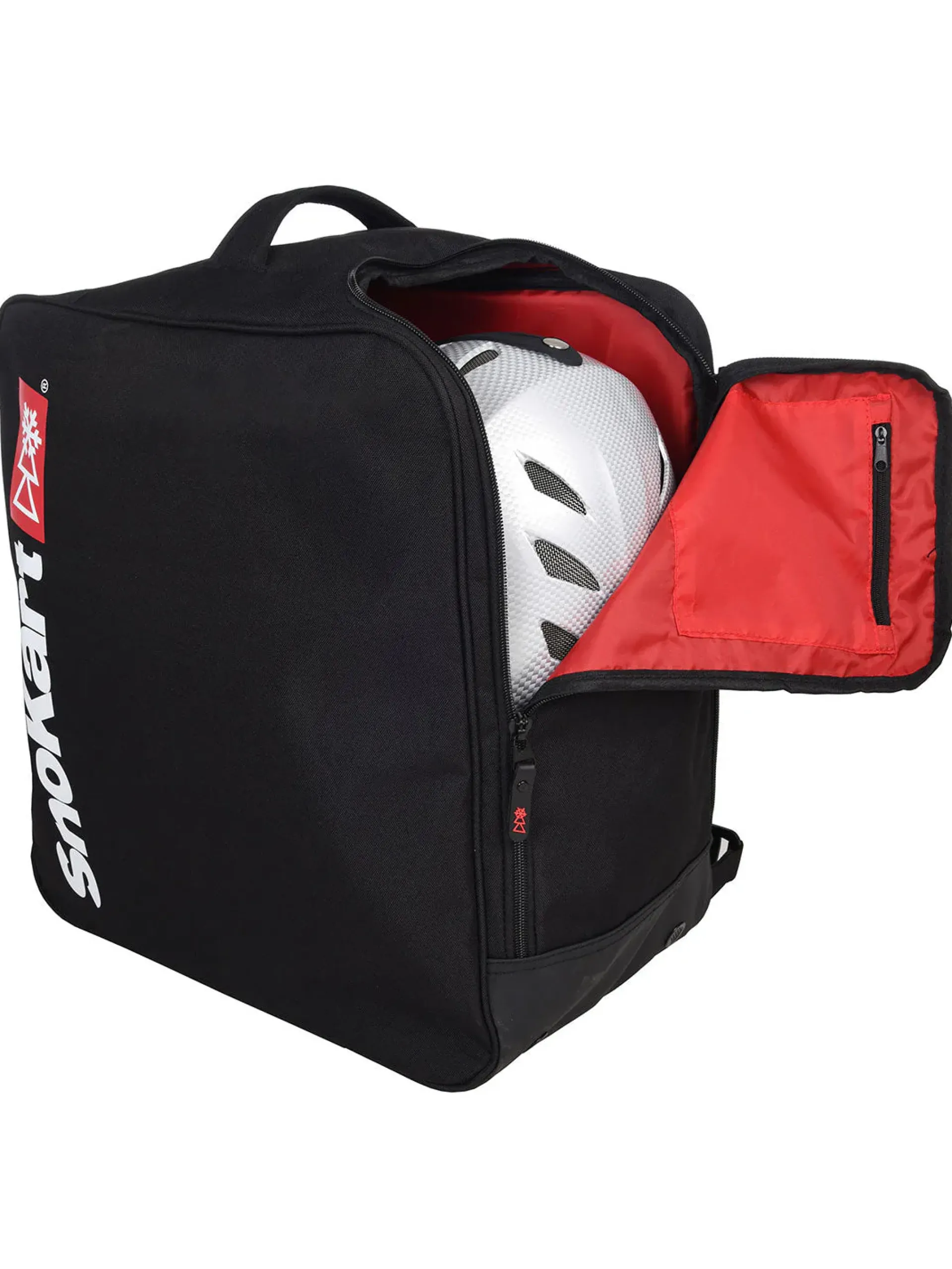 Product DescriptionA simple but clever backpack for boots, a helmet and accessories. Updated for the latest season it can now be used to carry 2 pairs of boots if required, making it even more versatile.nnnnWith a backpack harness and a carry compatible back it can be worn, carried or rolled on the handle of your roller luggage.nnnnIt fits into many aircraft overhead lockers, but check airline restrictions before you fly.nnnnIts also a great hands free way to move your kit around resort without having to use a big ski bag.nnnnPerfect for 2 people travelling together with their own bootsnnnnUse with our Boot AirlinerFeaturesMain boot compartmentSeparate top compartment for second pair of boots or helmetVents allow boots to breatheInternal zip pocketPadded back supportPadded carry handles and back pack strapsAddress tag suppliedTough tarpaulin base and PFC free main materialUse in conjunction with our AIRLINER bags to keep clothing clean and equipment protected.Can also carry goggles, gloves, socks and other smaller items of clothing or accessoriesGets bulky items out of main luggage to free up space for other gearTake your ski boots as hand luggageSize: 44cm high x 40 cm wide x 24cm deepWeight: 1.20 KgFitMaterial CompositionCare