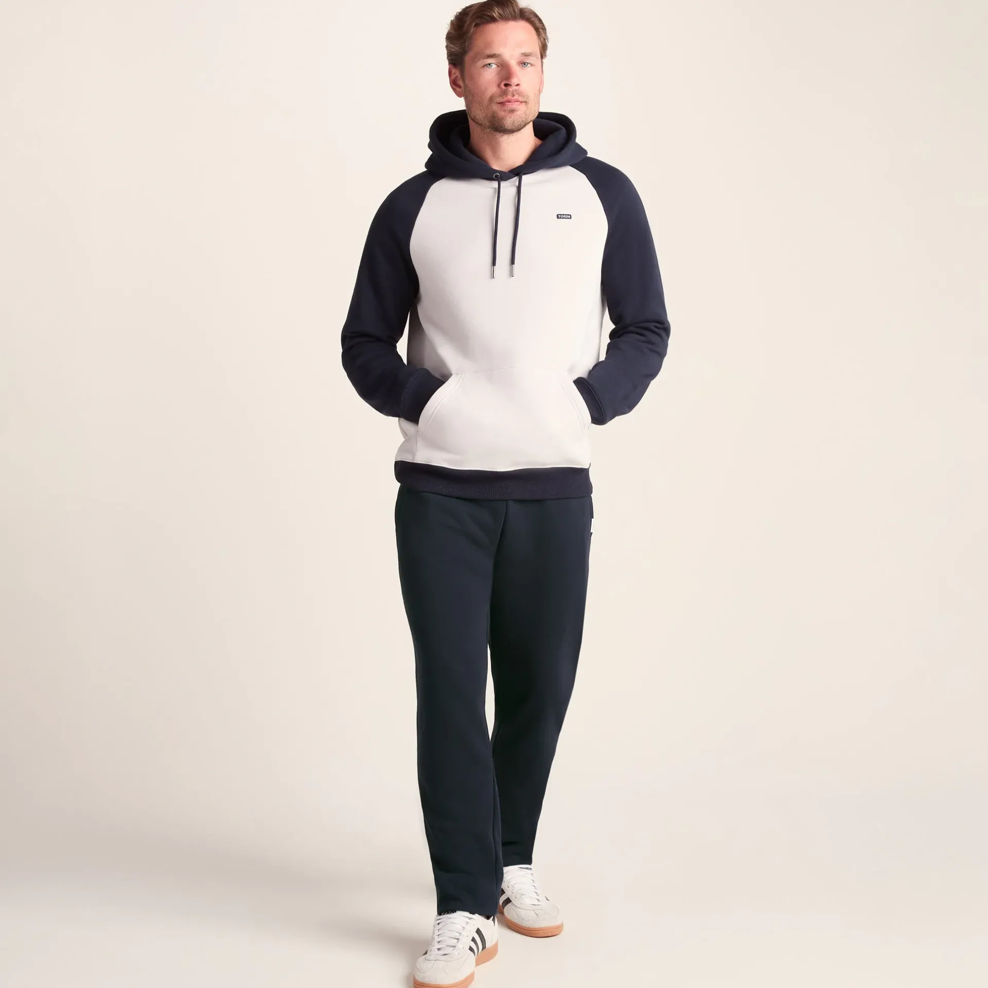 Product DescriptionRelax at home in our lightweight joggers, or pop them into your gym bag as the perfect cover-up after exercise. Designed by our team in Yorkshire, they’re cut in a straight leg style from a lightweight cotton blend fabric that feels cosy and soft with a loop-back finish on the inside and supersoft peach finish on the outside. They hold up snugly with the deep, comfy ribbed waistband, or you can tie the drawcords as well. The TOG24 ‘Truth Over Glory’ branding is seen on a small label on the front pocket.FeaturesSupersoftDeep elasticated ribbed waist with drawcordsStraight leg2 large pocketsTOG24 woven label on pocketFitStudio model Joshua is wearing size M and is 6′, chest 39