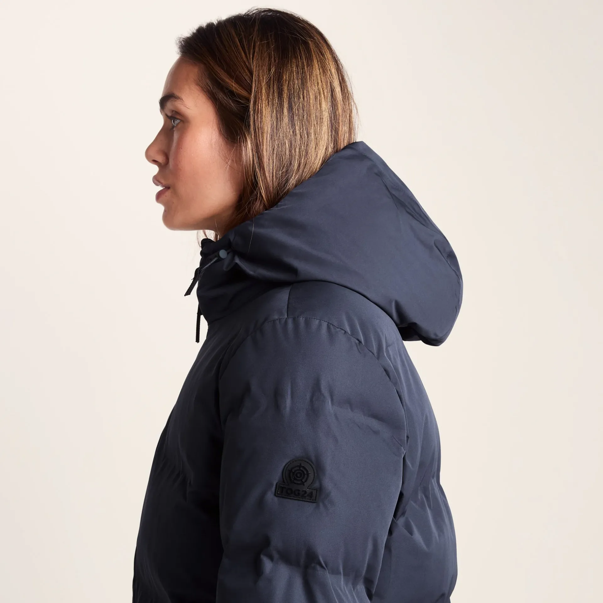 Product DescriptionThe Dina womenâs quilted jacket is designed to give you proper warmth, thanks to those smart heat-sealed baffles. No puffed-up drama, just clean quilted lines and a flattering fit.nThis womenâs puffer jacket is made with trendy heat-sealed quilting, which gives it a unique look you wonât ordinarily find on the high street, while the relaxed, boxy fit makes it perfect for layering up. Youâll be able to stay toasty with the stretchy inner cuffs that trap the warmth and keep the wind at bay, plus the DWR coating has you covered in case of a light shower.nThis womenâs puffer jacket is versatile, and thatâs precisely why itâs a keeper. The toggle adjusters at the hem let you switch things up depending on the weather – simply drop it down for extra coverage with jeans or cinch it in to show off your outfit underneath. At the end of the day, this womenâs quilted jacket is all about options.nThe boxy fit means youâve got room to layer, and the secure pockets are perfect for stashing your phoneFeaturesLight rain protection, wind resistant and warmHeat sealed quilted designWater repellent coating (DWR)Relaxed boxy fitToggle adjusters on the hood openingWP zip opening to front2 lower zip pockets, 1 inner zip pocketToggle adjusters to hemStretch inner cuffTOG24 badge on sleeveFitStudio model Narine Dress 6 uk Height 5′ 6½* Bust 32 Waist 24