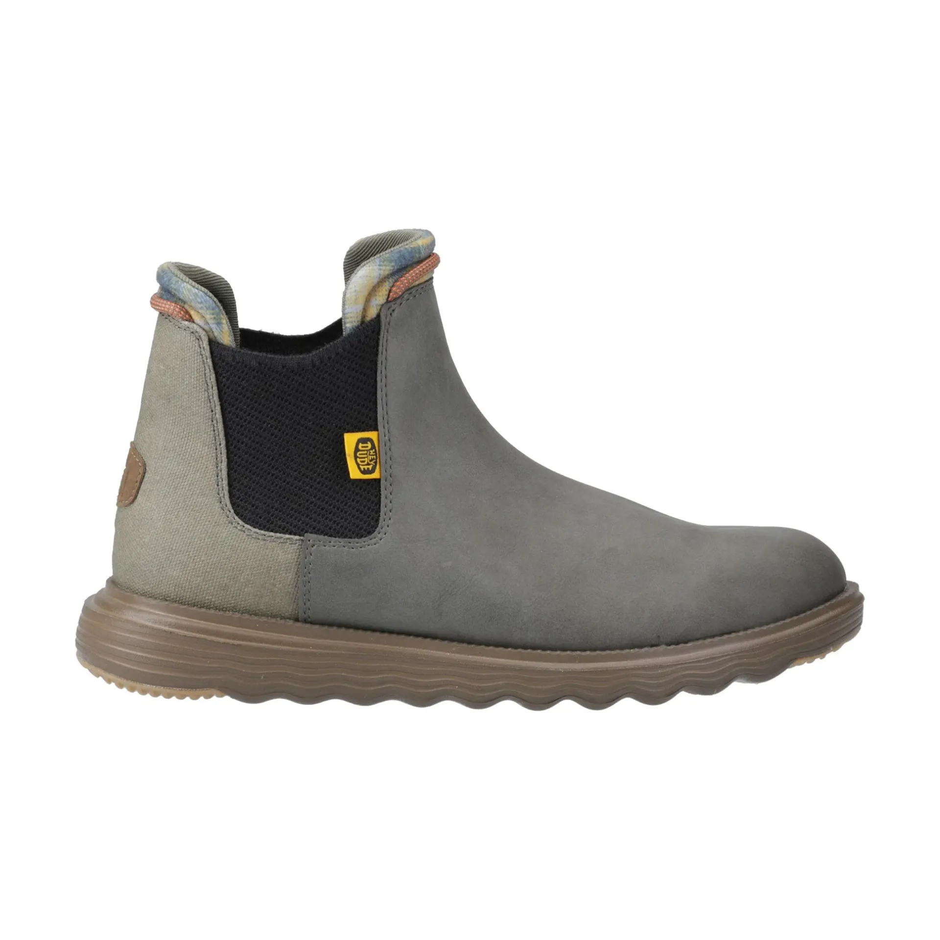 Product DescriptionA classy boot for a classy dude. Branson Classic is in it to win it this season with a faux leather water repellent upper, lightweight flex outsole and rubber pods for added traction. Slip into classic HEYDUDE comfort and style.FeaturesSynthetic upperUpper treated with water repellent sprayEasy-on systemRemovable foam insoleLightweight flexible outsoleRubber pods for added tractionFitMaterial CompositionUpper: PU. Lining: Acrylic. Sole: EVA/TPRCare