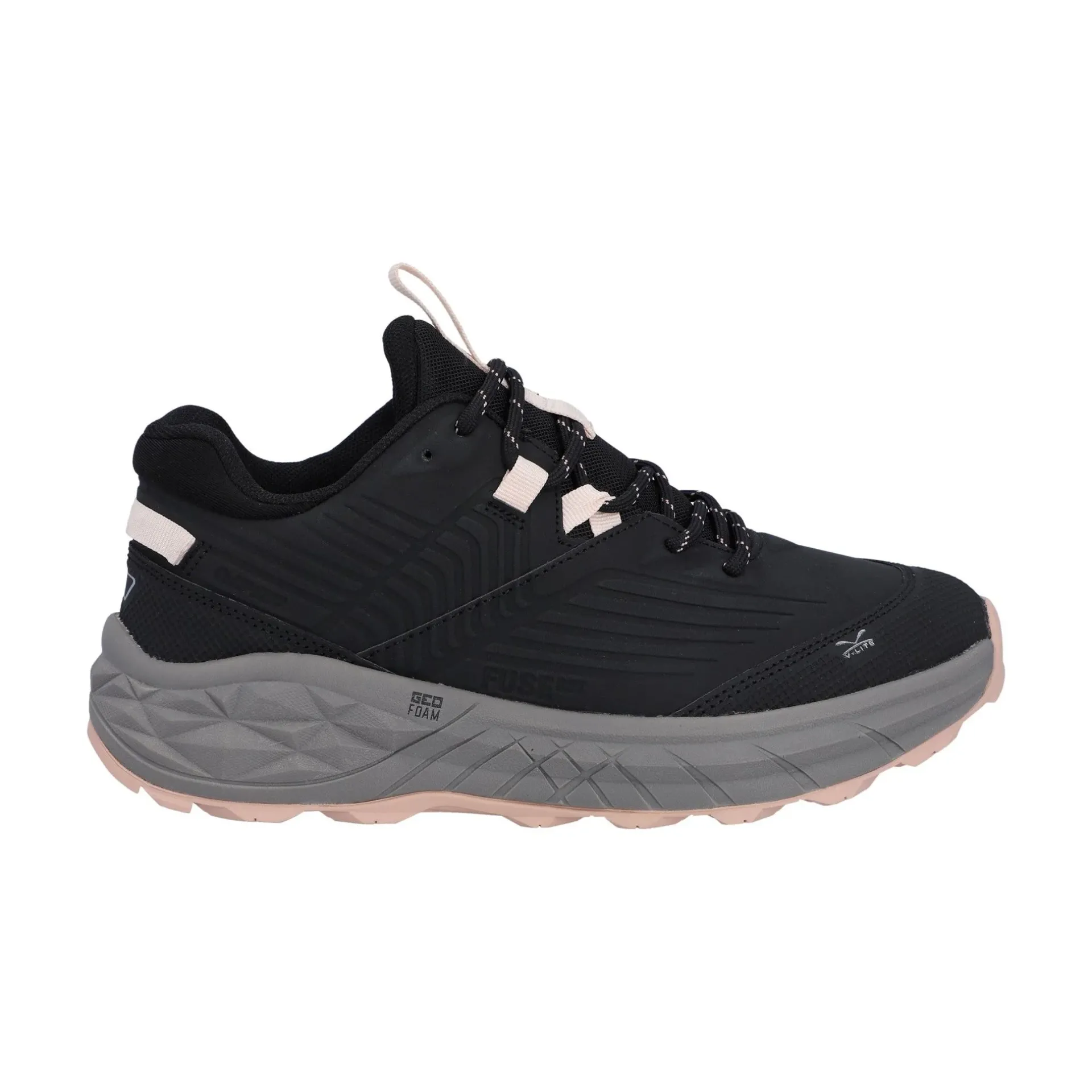 Product DescriptionA super rugged and durable sports trainer offering amazing underfoot cushioning and comfort on the trail. Extremely lightweight build construction that does not compromise on quality or performance.FeaturesA rugged and durable sports trainer offering amazing cushioning and comfort on the trail. Extremely lightweight build construction that does not compromise on quality or performance.A soft highly durable embossed PU leather upper provides support and protectionProtective toe and heel overlays help prevent scuffingGEO foam engineered EVA midsole offers higher rebound when walking and is ultra soft for underfoot cushioningDTA (dynamic transition aid) provides torsional rigidityMDT rubber outsole is durable and offers traction on and off the trailFitMaterial CompositionUpper: PU/Polyester. Lining: Polyester Mesh. Sole: Rubber.Care
