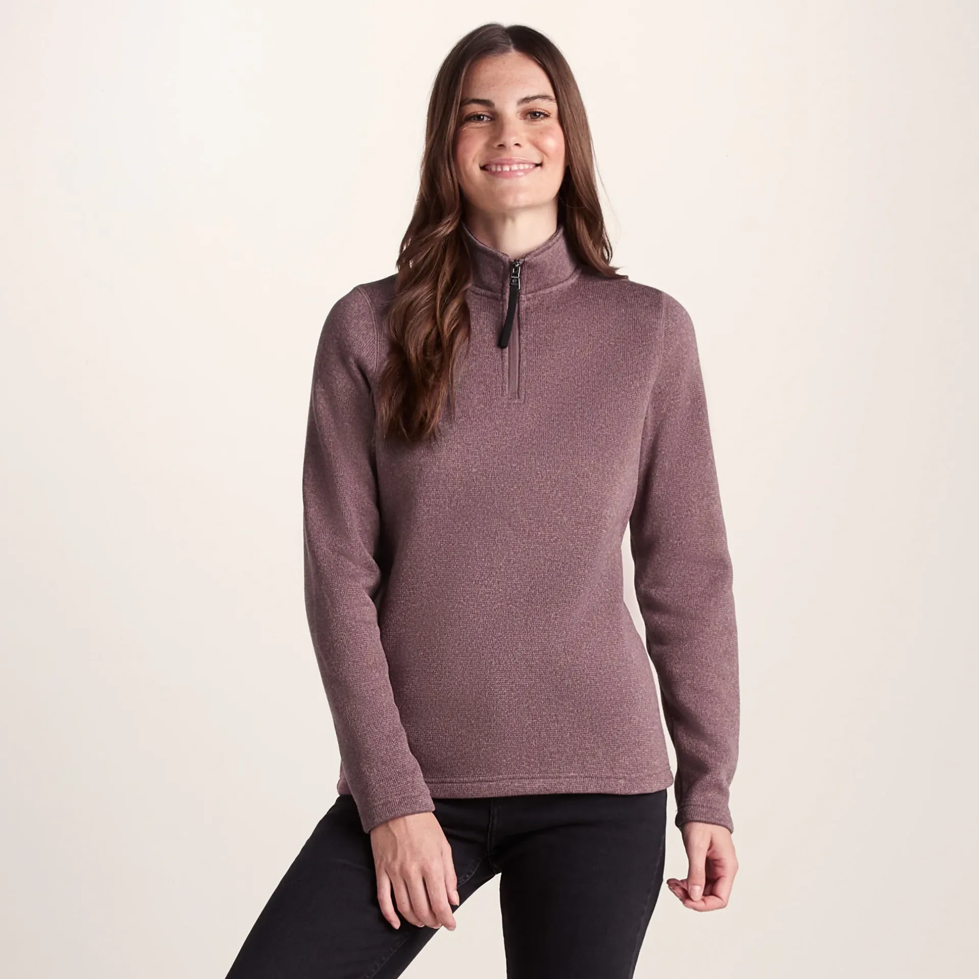 Product DescriptionSupersoft and a really useful layering piece, our Pearson knitlook women’s ¼ zip top combines the relaxed appeal of knitwear with the insulating warmth of fleece. Ideal for going to an outdoor workout or doing the school run, it can be worn alone on cool days yet easily fits under a coat or waterproof. Cut in a flattering, streamlined shape with a high zip-up neck for extra snugness, Pearson is anti-pill and comes in colours that reflect the sunlit North Sea and heather-clad moors of Yorkshire. ‘Truth Over Glory’ branding appears as an embossed Yorkshire rose on the sleeve.FeaturesSupersoft and warm knitlook fleeceAnti-pillZip neck openingEmbossed rubber Yorkshire Rose badge on sleeveFitStudio model Gina Dress 8/10 uk Height 5’11* Bust 34c Waist 26.5