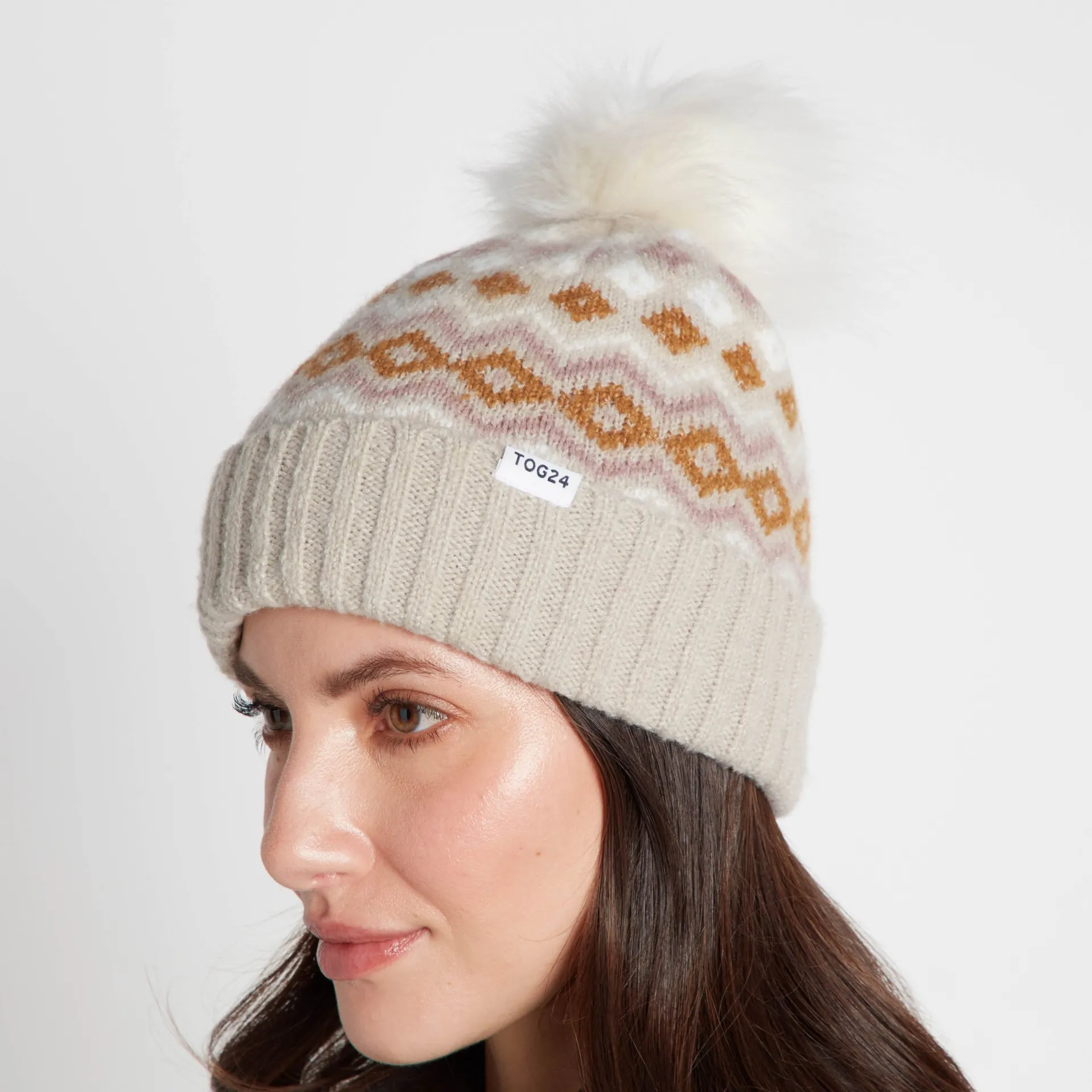 Black November EventGet an extra 15% off this product – automatically applied at checkoutCannot be used in conjunction with any other discountsProduct DescriptionFor a festive winter hat that’s stylish and warm, look no further than Redmund. This cosy knitted hat features a Fairisle design that adds a seasonal touch to your existing winter kit. With a lovely knitted texture and a ribbed turn-up edge, Redmund is super warm, making it ideal for long walks, hikes, and days out with family. This hat also features a trendy faux fur pom pom at the top for an extra festive, wintery feel that looks fantastic. The inner Borg headband also makes this hat soft against the skin while providing added protection for your forehead and ears.FeaturesFairisle knit bobble hatFaux fur pom pomRib turn upInner borg headbandTOG24 woven label on turn upFitMaterial CompositionBody: 77% Acrylic, 20% Polyamide, 3% Elastane. Lining: 100% Polyester.CareHand wash.