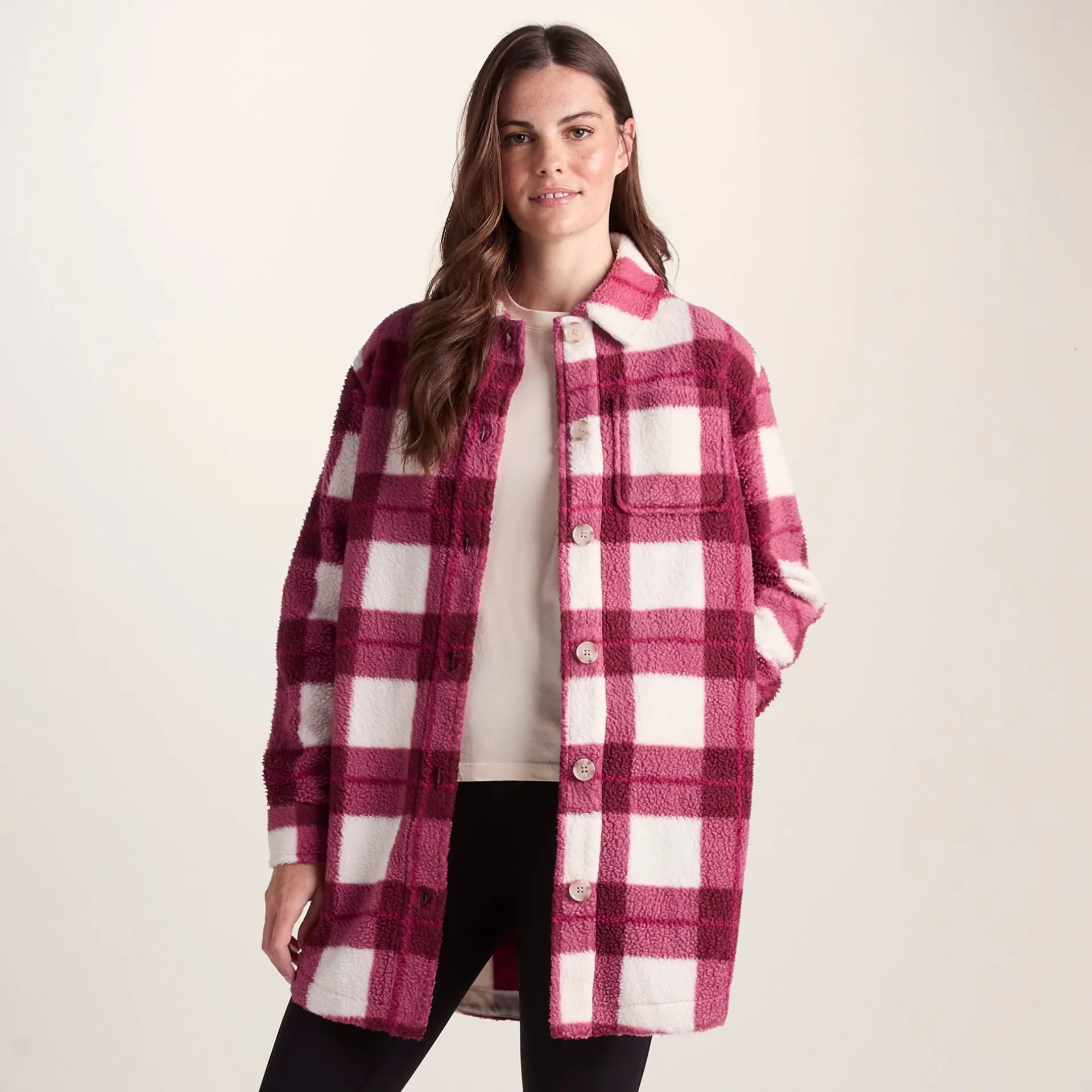 Product DescriptionStepping out on a crisp autumn day with the Sally womenâs shacket draped around you will make every countryside stroll feel like a scene straight out of a Richard Curtis flick. Thanks to her toasty sherpa fleece lining, this womenâs shacket wraps you in a warm embrace – making chilly days something to look forward to rather than a chore!nWith her flattering knee-length cut and designer curved hem, the Sally shirt jacket knows just how to highlight your best angles. The printed check on the body and sleeves screams timeless charm, and the branded TOG24 buttons, along with the woven label, add some quality detailing.nThis womenâs shirt jacket has got room for all your little essentials, with two chest pockets and a couple of secret side seam pockets perfect for stashing the important stuff. Whether you’re pairing her with boots and jeans for a day out with the kids or layering up for a breezy trip to the seaside, Sally’s guaranteed to make you feel confident, chic, and perfectly cosy.FeaturesSherpa fleece shacketPrinted check on body u0026amp; sleevesKnee length shacket with a curved hem2 Chest pockets, 2 discreet lower pockets in the side seamsBranded TOG24 buttonsTOG24 woven label on the hemFitStudio model Gina Dress 8/10 uk Height 5’11* Bust 34c Waist 26.5