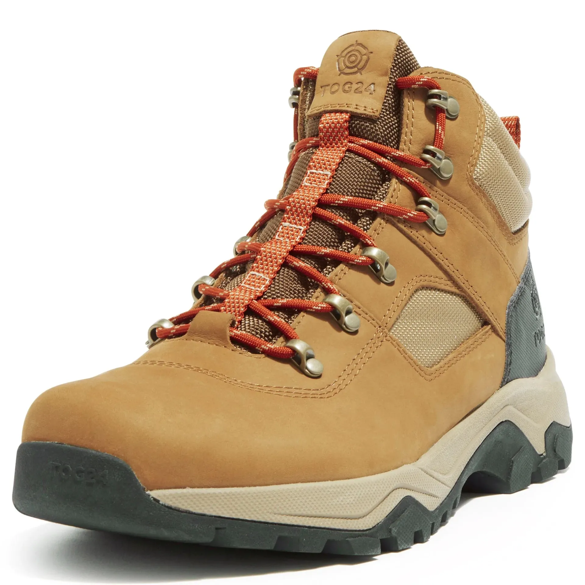 Clearance*This product is excluded from all additional promo code discountsProduct DescriptionOur designers set out to create the perfect mens leather walking boot and Tundra is the result. Supportive, waterproof and breathable, the boots let you walk for miles in comfort, giving you a good confident grip, and most importantly, keeping out the wet. Made from premium, high quality materials to exacting standards, they have moulded inners for comfort and deep cleats on the outer sole for outstanding grip and traction. A padded collar round the ankle gives you extra support, so you can set off for your hike in complete confidence. TOG24 stands for Truth Over Glory, and the high quality and uncompromising design of these leather hiking boots is the perfect embodiment of that. The boots are finished with the iconic TOG24 Yorkshire Rose embossed onto the heel and tongue and moulded into the sole.FeaturesWaterproof leather uppersWaterproof and breathable liningPadded ankleMoulded foam footbed and mid-sole for underfoot cushioningMetal lacing rings and flecked tubular lacesDurable cleated rubber outsole for gripEmbossed logo on the heel, tongue and soleFitMaterial CompositionUpper: Leather.CareWipe clean only.