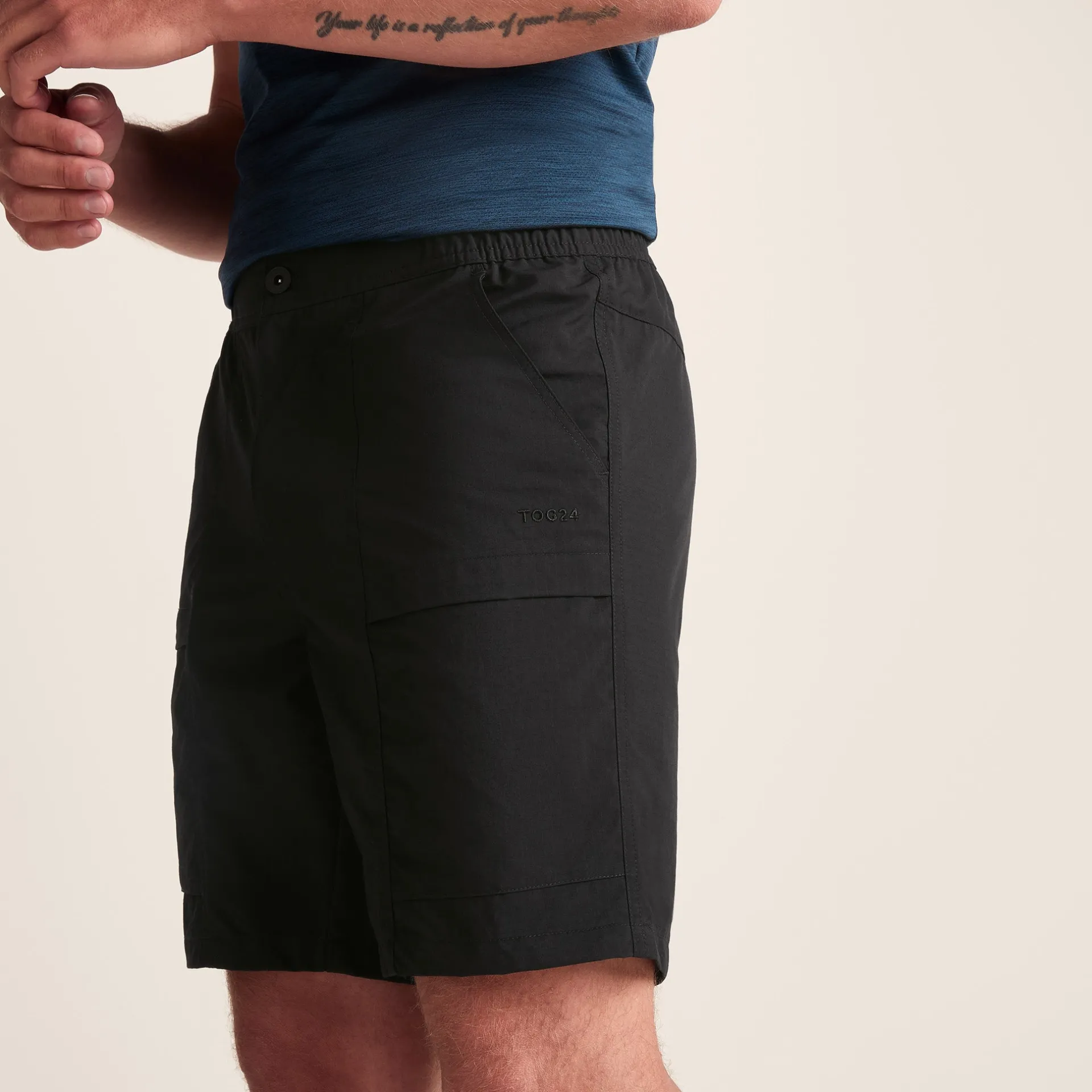 Product DescriptionTOG24’s men’s Activate technical shorts are built for exercise and adventure. Made from an ultra-durable ripstop fabric, that’s also lightweight, these shorts are tough without compromising movement, which is a must whether you’re out walking, running or just pottering in the garden. The material has a DWR coating which makes the shorts water-resistant, helping to keep you dry in Britain’s sometimes unpredictable weather.nnThe buttoned fly, and button, hook and eye combination at the waist makes these shorts extra comfy and the two hip pockets, zipped fly pocket and zipped rear pocket give you loads of places to store your valuables and keep your belongings safe when you’re out and about.nnWhether it’s outdoor activities, a casual stroll, indoor sports or just something comfy for the house, Activate are the shorts you need!FeaturesLightweight, Ripstop FabricWater Repellent Coating (Dwr)Zip FlyButton And Hook And Eye At The Waist2 Hip Pockets, 1 Zipped Thigh Pocket, 1 Zipped Back PocketTog24 Embroidery To ThighFitStudio model Efosa is wearing size M and is 6’1