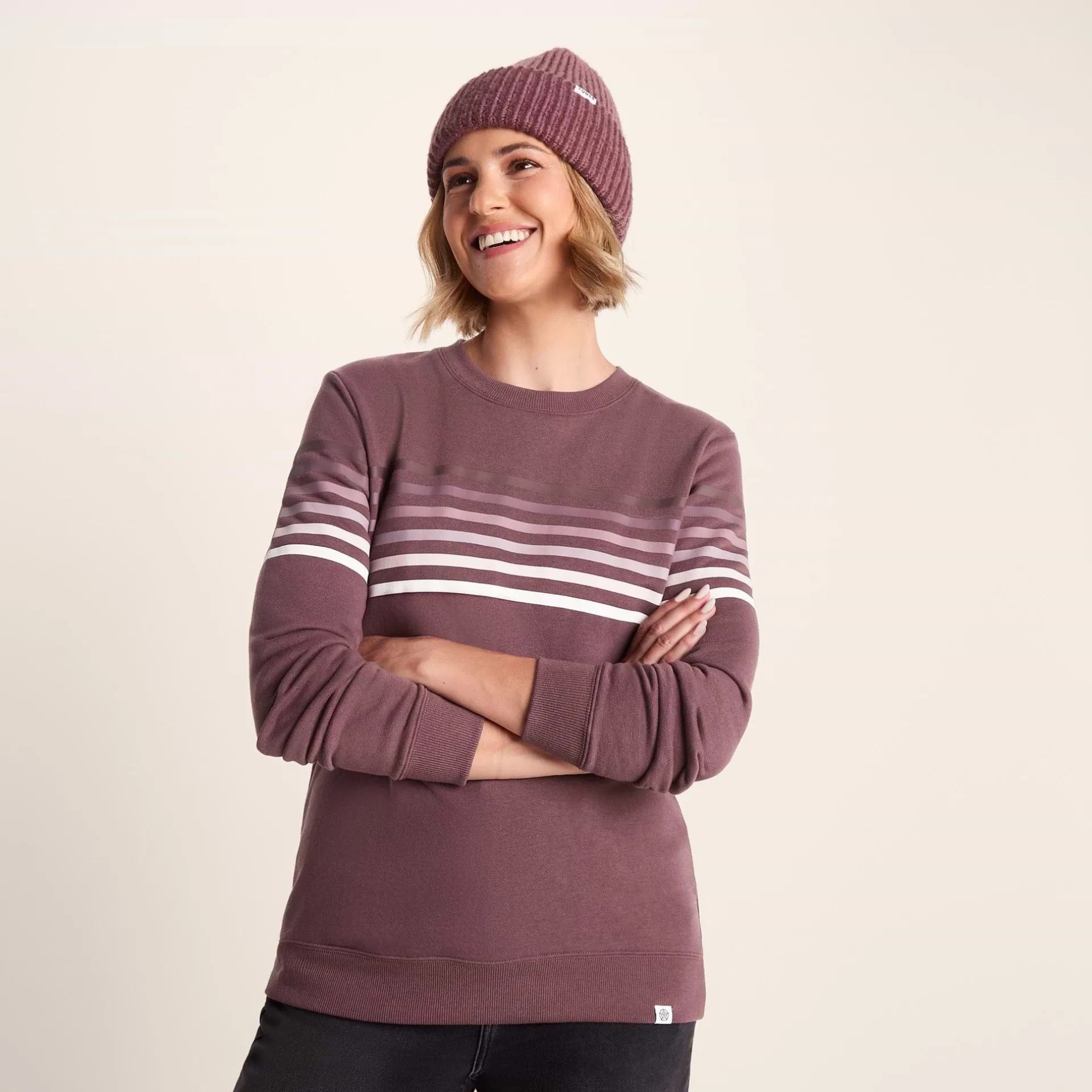 Product DescriptionSoft in texture with colourful stripes printed horizontally across the chest and sleeves, our Bayman is a super versatile women’s crew neck sweater. Layer over leggings for a care-free stroll across the Yorkshire countryside, or team with jeans and trainers for a casual meet-up with friends. Made from a sustainable cotton blend that is exceptionally soft against your skin and grown in ways that reduce the environmental impact of clothing production, Bayman is a cosy layer perfect for cooler summer days. Edged with generous ribbing around the crew neckline, cuffs and hem for a premium look and snug fit, Bayman won’t lose its shape, even after lots of washes. Designed by the our team in West Yorkshire, this gorgeous sweater is finished with a discreet TOG24 logo on the hem.FeaturesSupersoft sustainable cotton blend crew neck sweaterPrinted stripes on chest u0026amp; sleevesRib hem u0026amp; cuffsSmall woven label on hemFitStudio model Meg Dress 8 uk Height 5’10* Bust 34 Waist 25.5