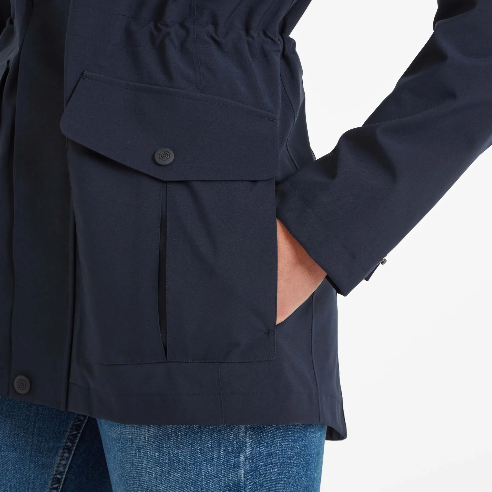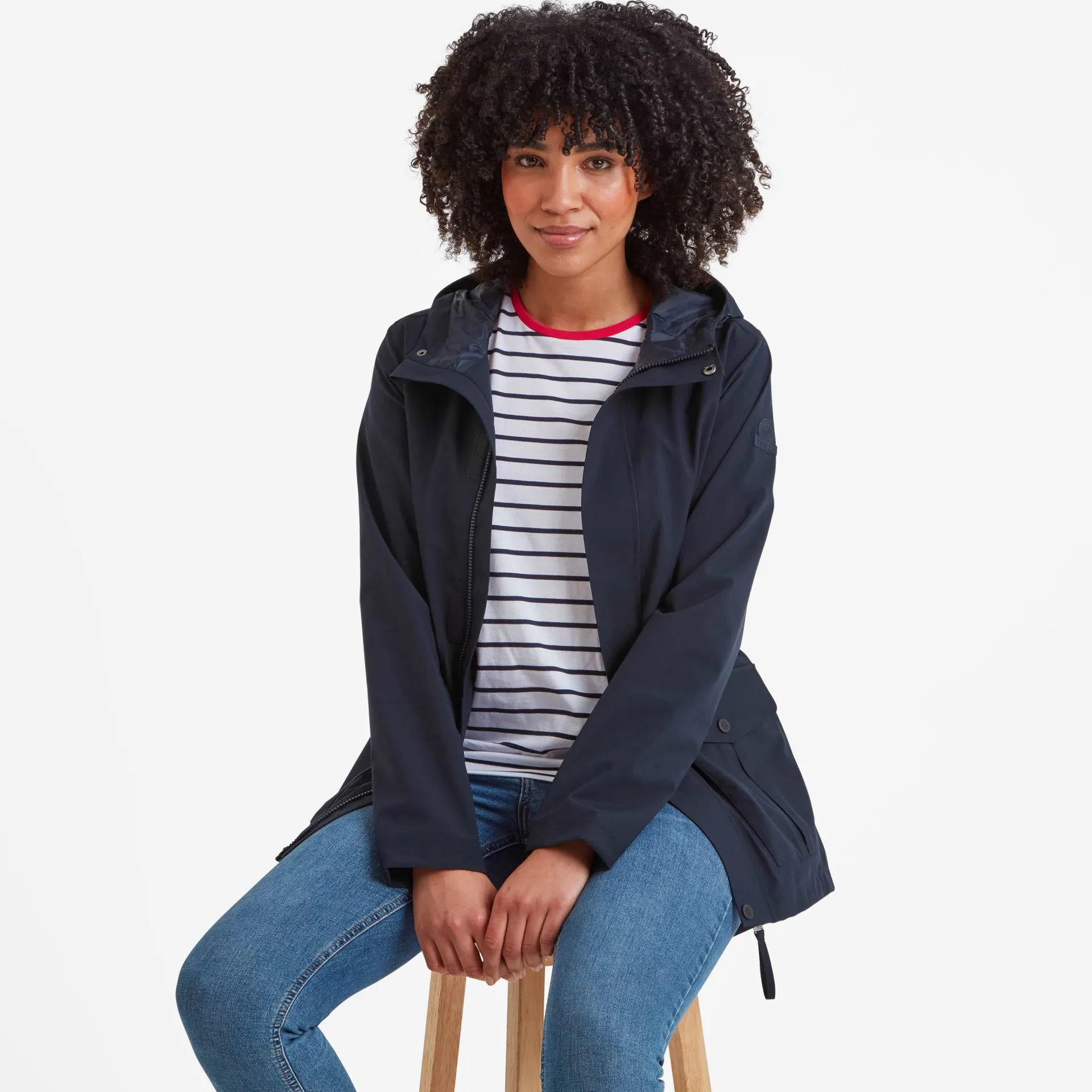 Product DescriptionOur Burradon womens waterproof jacket is designed to be your everyday waterproof companion. This jacket will keep you dry in all but the heaviest rain. There are plenty of handy places to stash stuff; on the outside, there are two angled patch pockets plus there’s a pocket on the inside. Also windproof, it’ll keep the breeze out even when it’s really blustery. Layered over a hoodie or jumper for extra cosiness.Features Waterproof (10K), Breathable (10K), and WindproofFully taped seamsWater repellent coating (DWR)Zip opening fastened with press studs u0026amp; velcro Toggle adjusters on the hood openingPress stud adjuster on the back of hood2 Lower patch pockets with side entry u0026amp; 1 inner zip pocketPress stud cuff adjustersToggle adjusters on the inner waistTOG24 badge on sleeveFitStudio model Natasha is wearing size 8 and is 5’10