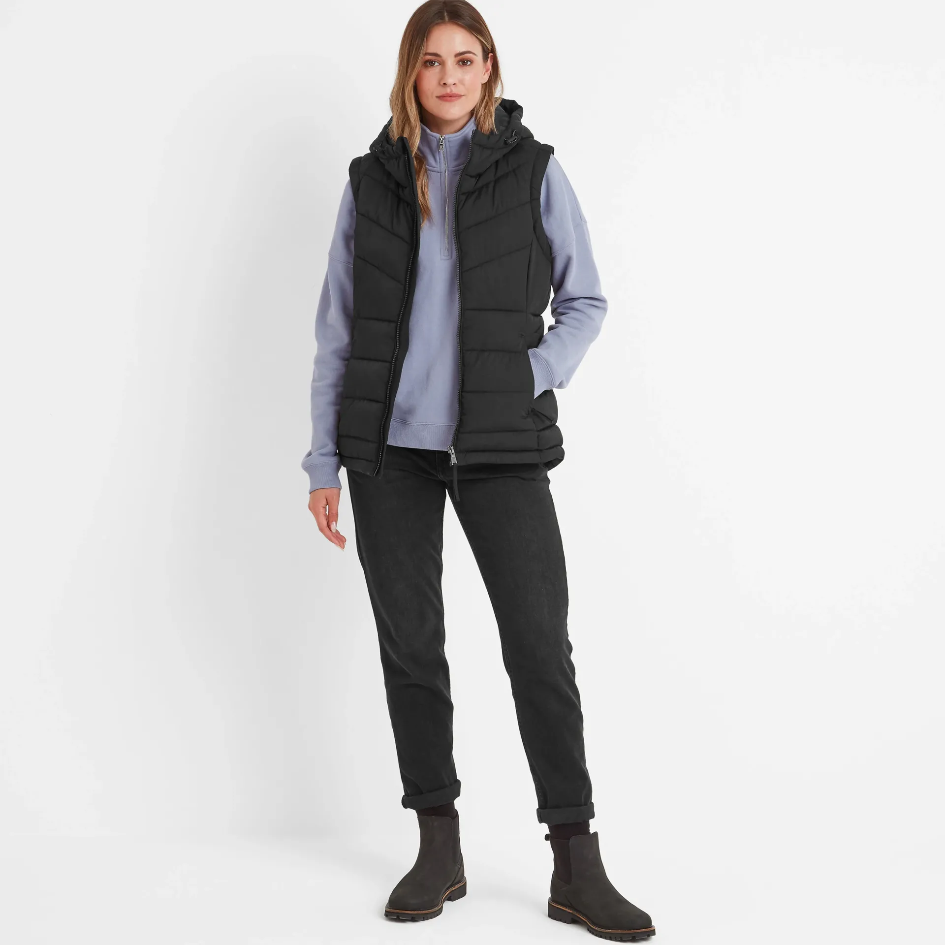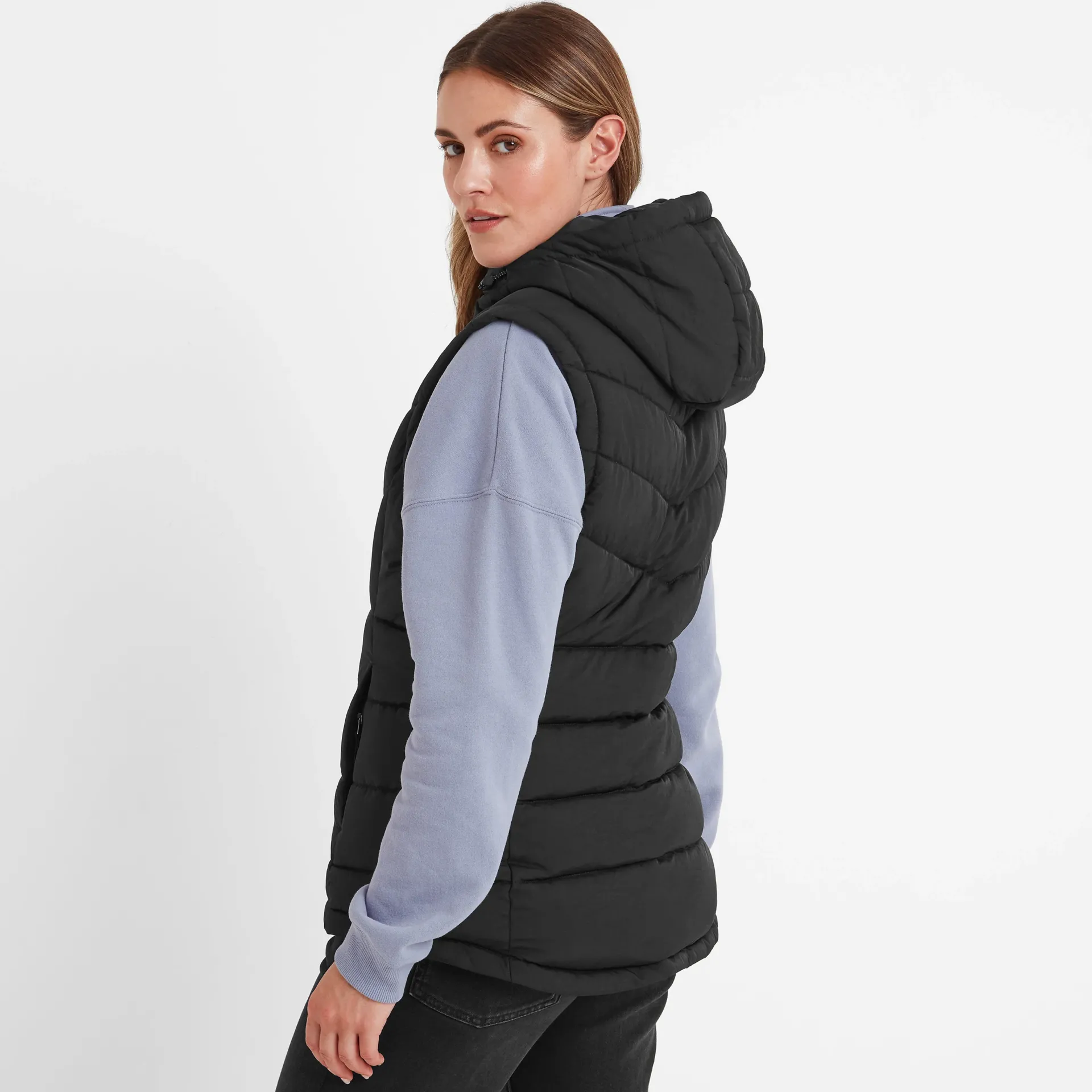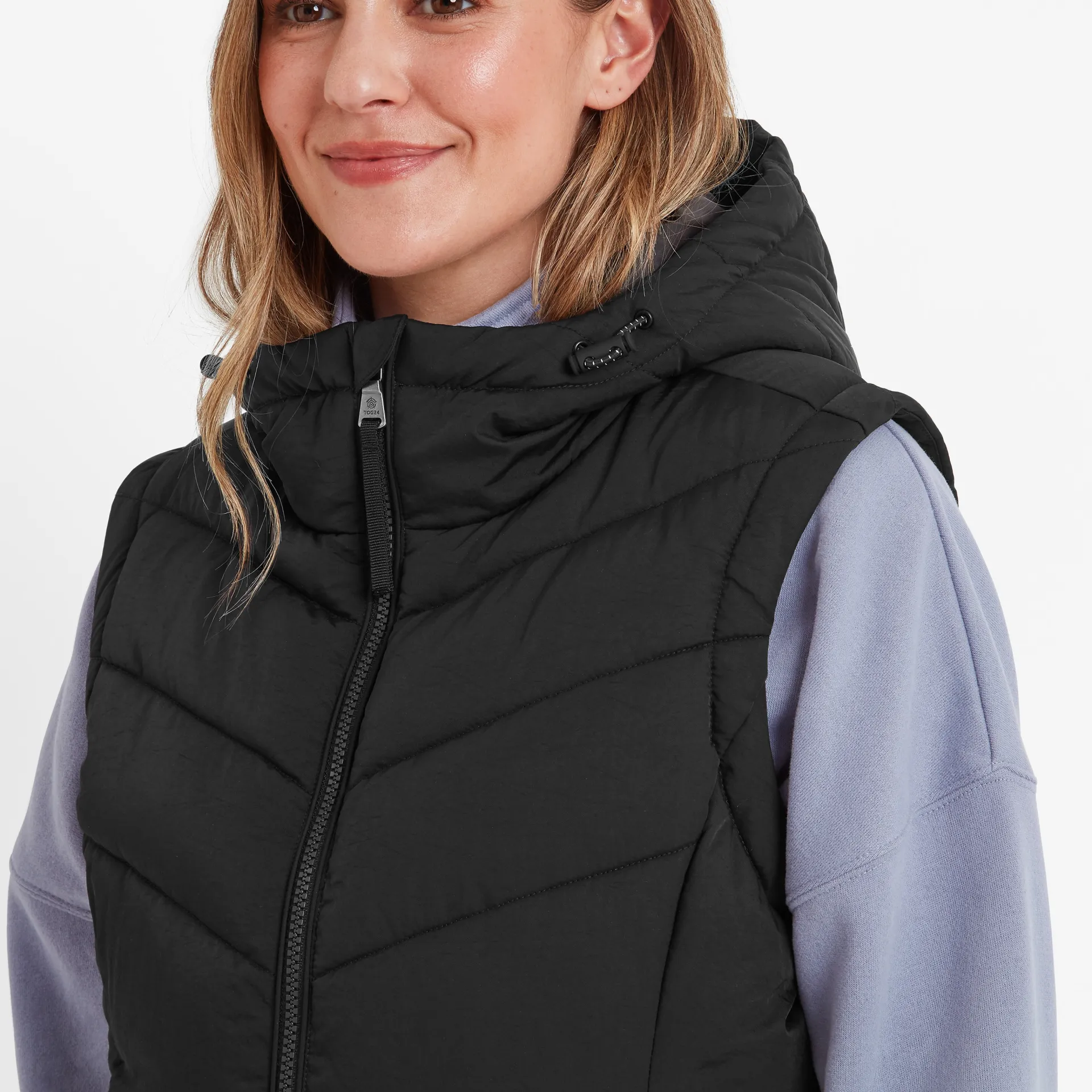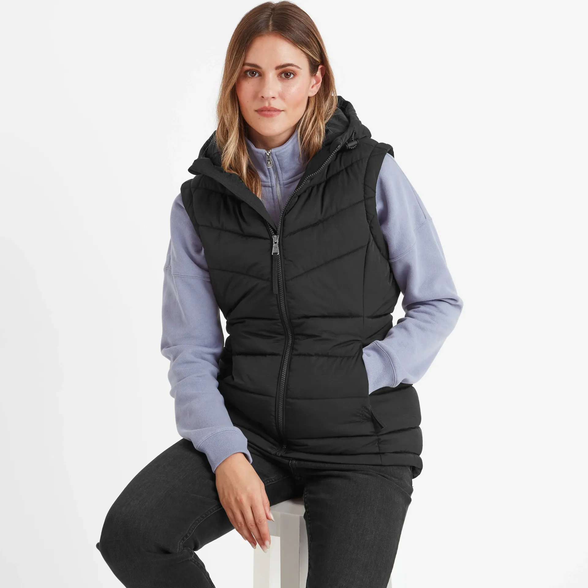 Product DescriptionFor those crisp mornings spent walking the dog, or nipping into town, the Calvo gilet will prove to be your favourite go-to garment. Filled with toasty-warm insulation and stitched up in a chevron and straight quilted design, this gilet offers the cosiest feeling of warmth around your chest, while also allowing for free movement of your arms on chilly days. With a handy hood and water-repellent coating, the gilet gives you light rain protection, while the zip pockets help keep your essentials safe and your hands warm.FeaturesLight rain protection, wind resistant and warmPolyester FillingStraight and chevron quilted designWater repellent coating (WR)Toggle adjusters on the hood openingZip opening on front2 lower zip pocketsTOG24 embroidery on the pocketFitStudio model Meg is wearing size 8 and is 5’9
