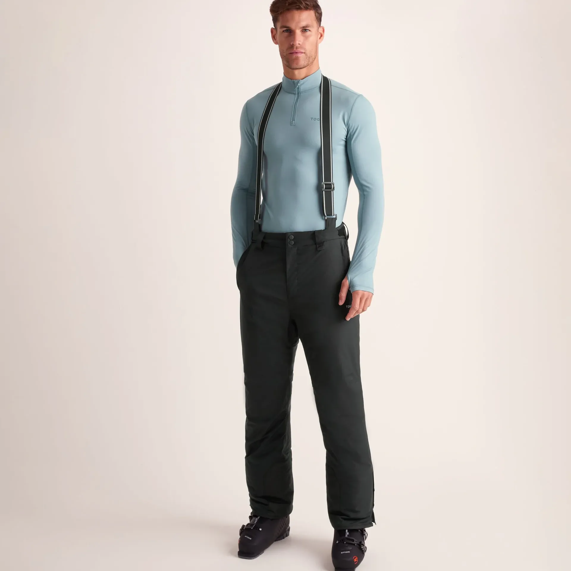 Product DescriptionWhen you’re carving through fresh powder, the last thing you want to worry about is getting cold and wet. That’s where the Clusaz men’s salopettes step in! With their reliable 10K waterproof, 10K breathable, and windproof build, these men’s ski trousers keep you comfortable no matter what the mountain throws at you. Light rain simply rolls off the DWR coating, while fully taped seams ensure that no drop of moisture sneaks through.nComfort is king with the Clusaz men’s salopettes. The insulated inner keeps your legs toasty warm, while the tricot panelling on the lining provides extra cushioning on landing areas like your bum and knees – perfect for those unexpected tumbles! The high-waisted back design of the Clusaz men’s ski trousers gives you that little extra bit of coverage, and the velcro waist adjusters let you fine-tune your fit.nGetting geared up is a breeze with the secure zip fly, press stud, and hook and bar fastening. The fully adjustable, detachable braces give you extra suFeaturesWaterproof (10K), Breathable (10K), and WindproofInsulated innerFully taped seamsWater repellent coating (DWR)Tricot panelling on lining for extra comfortVelcro adjusters on the waistZip fly with press stud u0026amp; hook and bar fasteningFully adjustable and detachable elasticated braces2 zip hip pocketsZip vent opening on hemInternal snow gaitersReinforced durable fabric on inner legsTOG24 raised print below hip pocketFitStudio model Tyler is wearing size M and is 6’4