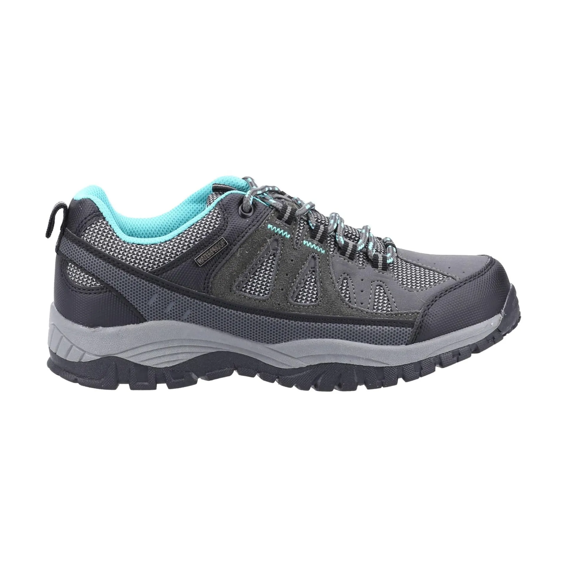 Product DescriptionLightweight, waterproof leisure hiker suitable for trail walking, woodland walks and low intensity hill climbs. Moisture wicking lining combined with breathable mesh panels and waterproofing technology keeps feet comfortable.FeaturesLightweight and breathable suede and mesh upperInner waterproof membrane keeps feet dryMoisture wicking mesh liningComfort padded collar and tongueGusset tongue keeps debris out the foot wellD-ring lacing system with tongue alignment loopStrong and sturdy thick cord lacingQuick changing enabled by speed lacing hooks and pull on loopRemovable shape retaining foam foot bedLightweight and flexible TPR sole unitFitMaterial CompositionUpper: Suede, PU, Mesh. Lining: Waterproof Membrane. Sole: TPR.Care