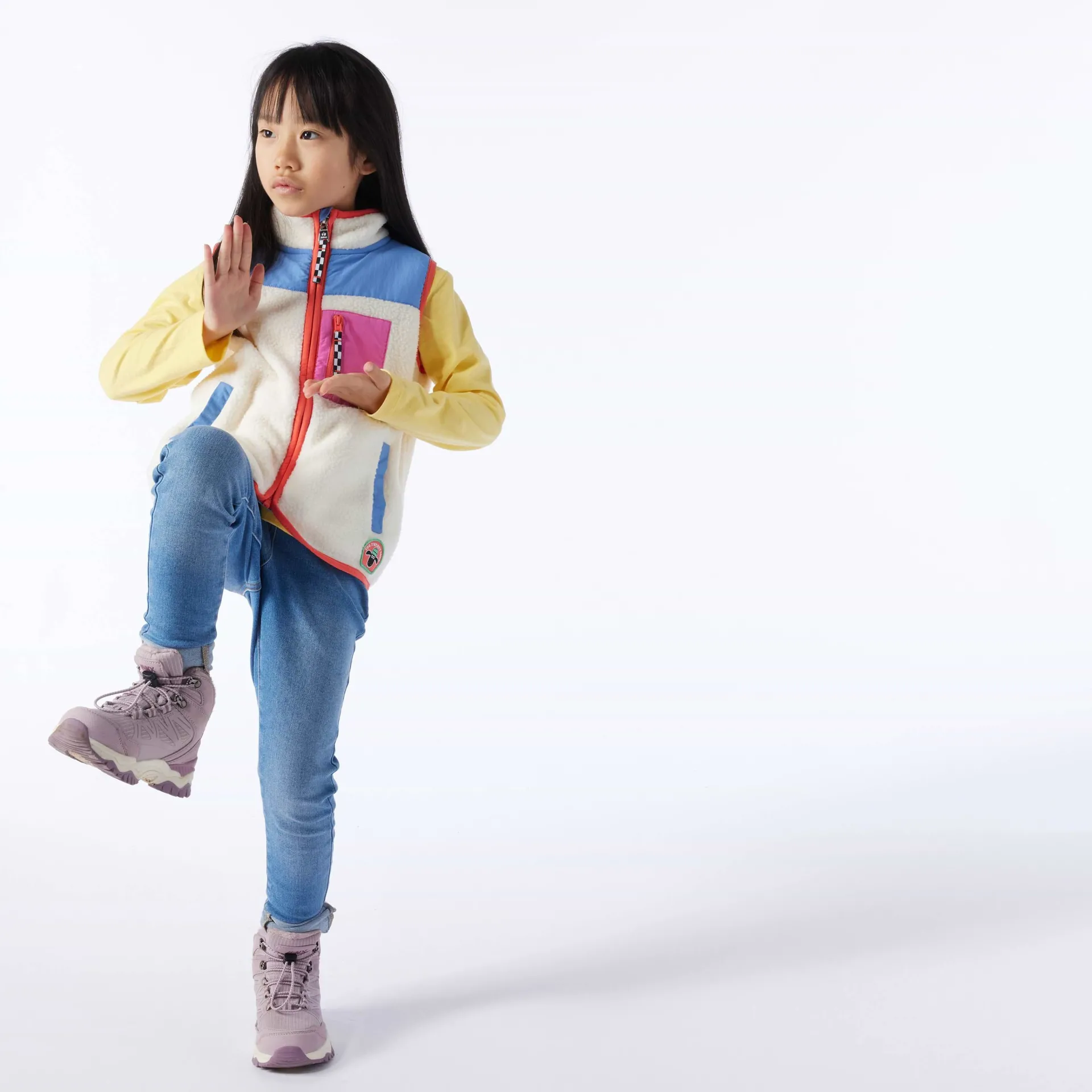 Product DescriptionWrap up your little lamb in woolly warmth with the TOG24 X Shaun the Sheep Damara kidsâ fleece gilet! Made from super cosy Sherpa fleece, this snug layer is perfect for popping on over a jumper or hoodie, and is ready and raring to go for whatever outdoor adventures your little one is into, perhaps a pop-out to the park, or just running wild in the garden like Shaun and the flock. Designed for comfort (and playtime practicality!) this heavy fleece gilet features contrast fabric panels, a handy zipped chest pocket and two lower pockets for keeping little hands warm. The elastic binding on the edges ensures a comfy fit, while the slightly curved hem at the front adds a cool touch. With Shaun the Sheep branding above the hem, and a handy name label on the inner, itâs a must-have for young fans who want the world to know they love Shaun the Sheep. Ideal for layering on chilly days, this kidsâ gilet will keep your little one snug and warm all day long.FeaturesTOG24 X Shaun the Sheep collaborationSherpa fleece giletContrast fabric panels at the top u0026amp; chest pocketElastic binding on the zip edge, neck, hem u0026amp; armholes2 lower pocketsName label on the innerShaun the Sheep branding above hemFitMaterial CompositionShell 1: 100% Polyester, Shell 2: 100% PolyamideCareMachine wash at 30c, Do not bleach, Do not tumble dry, Cool iron, Do not dry clean, Wash with similar colours, Specific care instuctions can be found on your garment care label