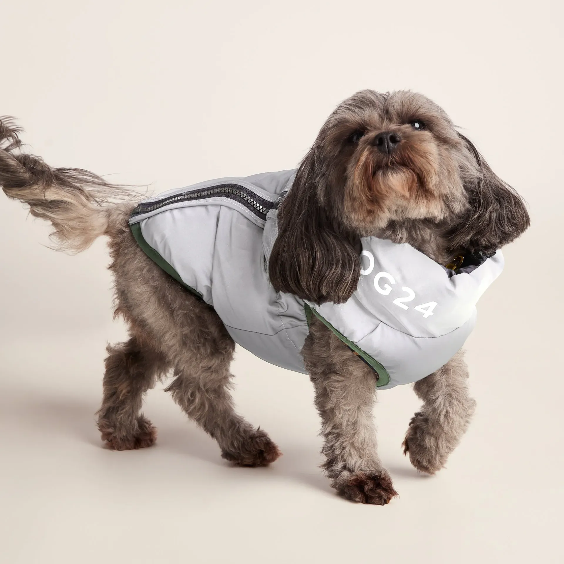 Product DescriptionInsulated for warmth and comfort, our Fetch coat for dogs keeps your pet cosy on cold winter walks. This stylish jacket is lightweight with a full length zip to make putting it on your dog stress-free. The reversible design has a reflective option so that your dog can be seen by cars and cyclists on dark early morning walks in the winter. A cut-out in the neck conveniently allows you to attach a lead while your dog is wearing the jacket. The colourblock pattern in tones inspired by the Yorkshire landscape with TOG24 printed on the neck gives the coat a sporty look both you and your canine companion will love.FeaturesLightweight u0026amp; padded dog coatReversible jacketOuter jacket is colour blocked u0026amp; Inner side of jacket is reflectiveZip fasteningHole for lead to be attachedTOG24 print on collarIntended for pet use onlyThis is not a toy and dogs should be supervised when wearingFitMaterial Composition100% Polyester.CareMachine washable.