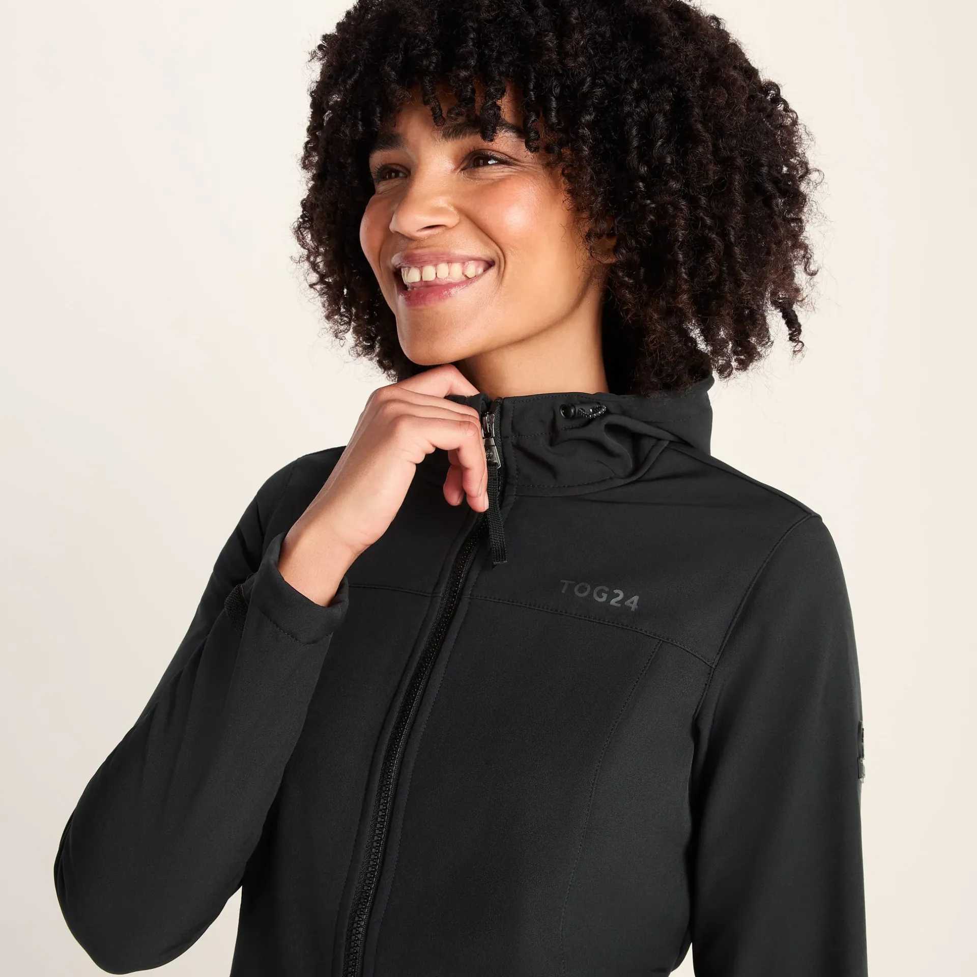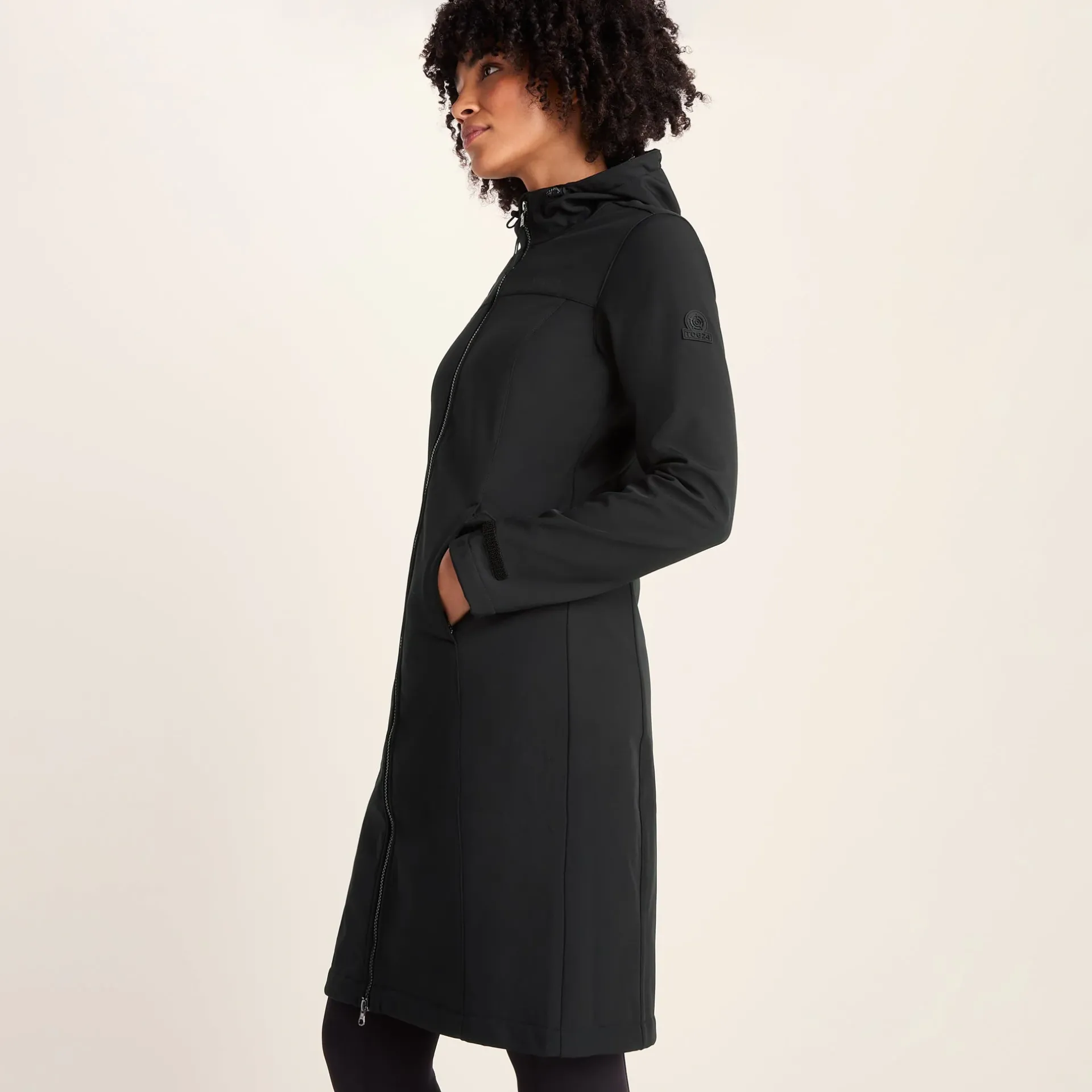 Product DescriptionFor a long, sleek softshell jacket that is both stylish and functional, look no further than our Marina womenâs long softshell jacket. Designed to be weather resistant to both wind and rain, this gently elasticated ladiesâ jacket is super comfortable and can be worn casually or on outdoor adventures like canal walks and strolls along the coast. nnWith microfleece bonded to the inside, this womenâs jacket feels super cosy against the skin while providing an outer membrane that prevents the cold wind from making its way in. nnThis women’s softshell has a smart look, perfect for travel to the office or a more dressed up day out. With two handy zip close pockets, you can also ensure your hands stay warm and your essentials stay safe with the Marina womenâs jacket. Lightweight, durable, and incredibly versatile, this jacket is ideal for women who want a reliable, stylish layer to handle whatever the weather throws at them.FeaturesWater resistant, Breathable u0026amp; WindproofMicrofleece bonded to the inside2 Way zip openingToggle adjusters on the hood opening2 Lower zip pocketsTouch and close cuff adjustersTOG24 print on the chestTOG24 badge on sleeveFitStudio model Natasha is wearing size 8 and is 5’10