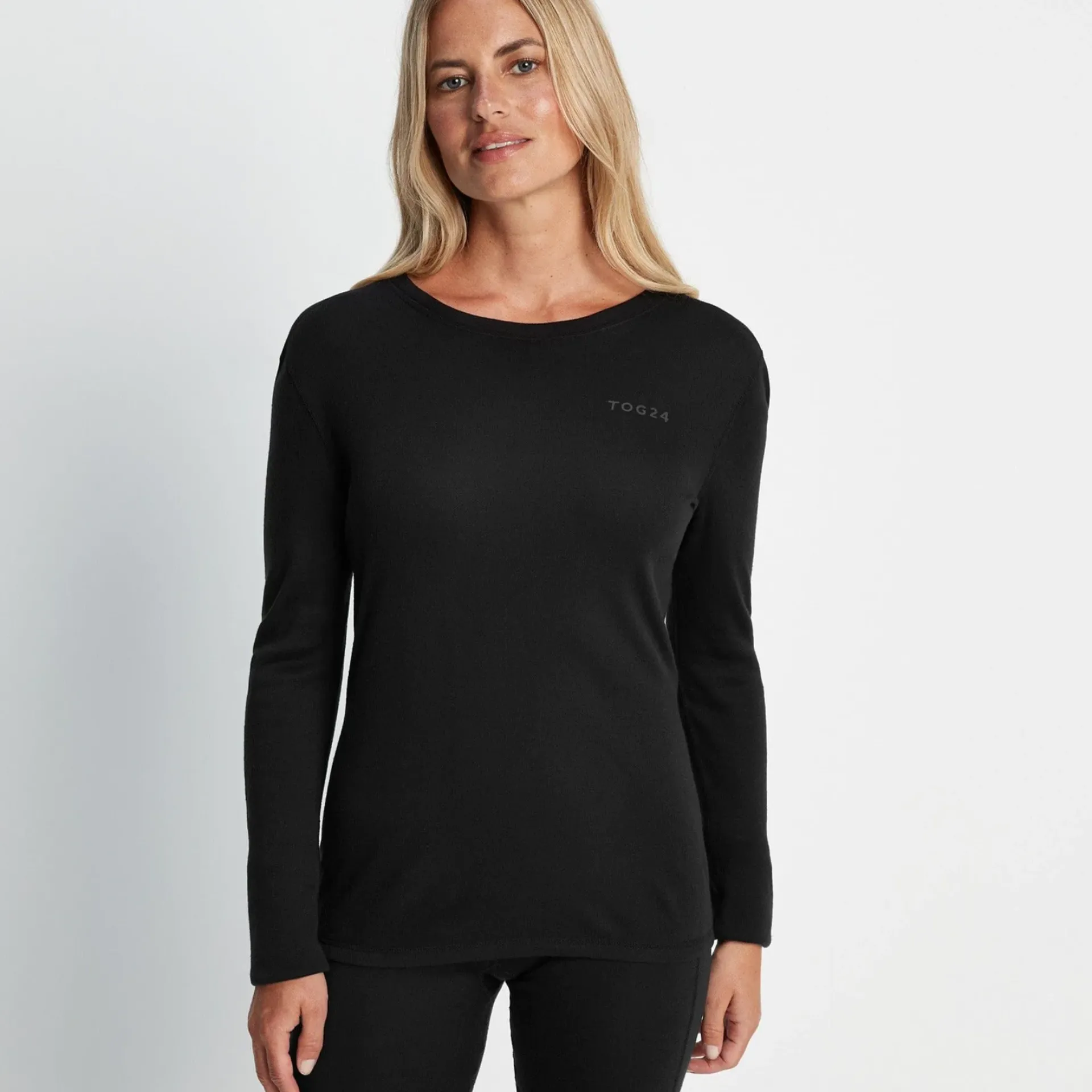 Product DescriptionOur Meru women’s base layer set offers a luxuriously soft alternative to your average set of thermals. Made using our Cashmere Touch fabric, this womens base layer set is super soft against the skin, all the while maintaining breathability and durability. Ideal for hiking, outdoor running, camping, skiing, snowboarding, and trekking, Meru is designed to quickly wick away moisture while offering odour control when working up a sweat. With inner anti-chafe seams, you can confidently layer even your thickest jackets, walking trousers, and snow suits over these layers without risking skin irritation or itching. Available in a simple crew neck top and leggings, these figure-hugging base layers are optimally comfortable and stylishly sleek.FeaturesSuper soft u0026amp; stretchy base layer setBreathable u0026amp; lightweightQuick wicking u0026amp; odour eliminatingAnti chafe seamsCrew neck top with TOG24 print on the chestLegging with TOG24 logo on the waistbandFitStudio model Isabelle is wearing size 8 and is 5’7