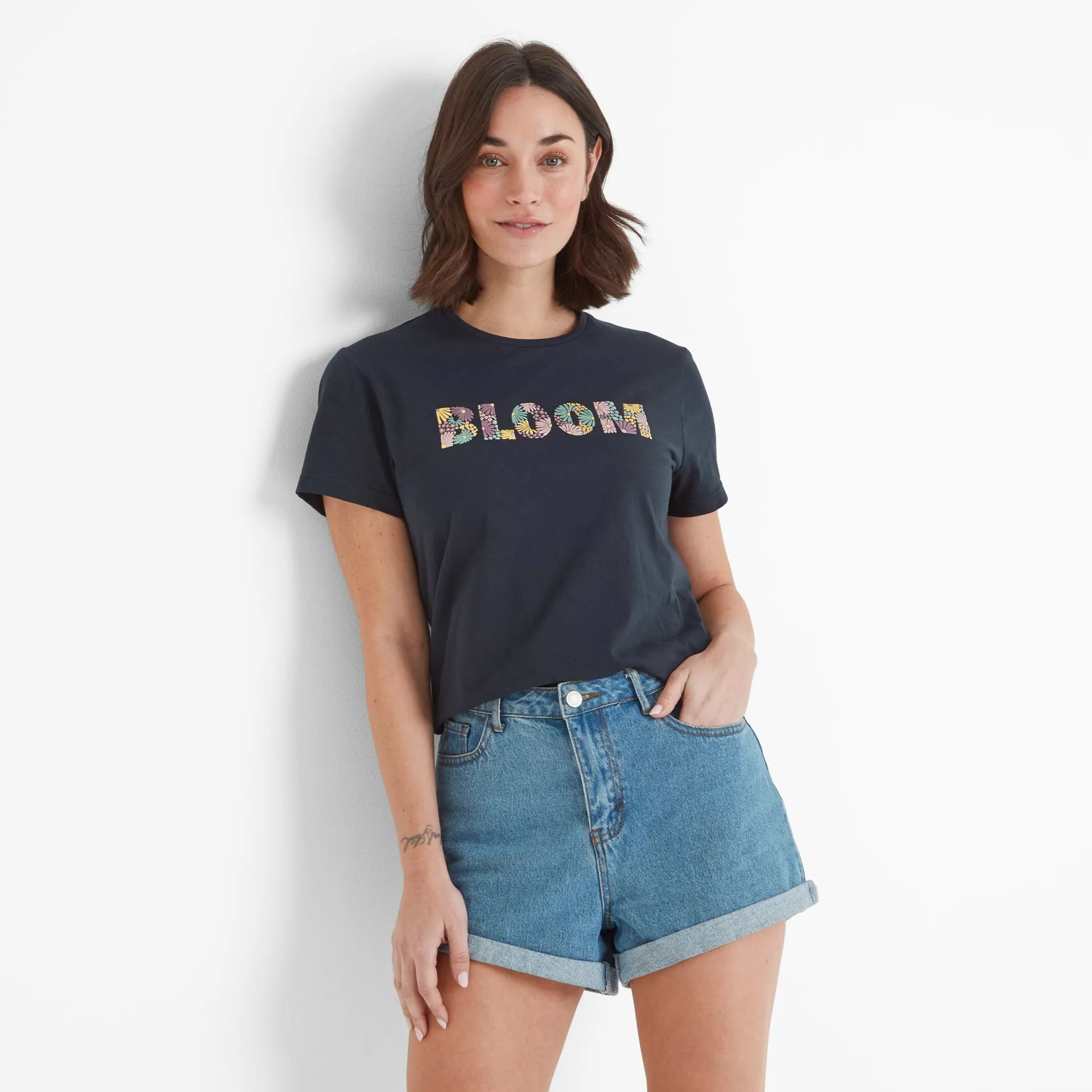 Clearance*This product is excluded from all additional promo code discountsProduct DescriptionThe Minda printed T-shirt gives all the summer vibes. Crafted from supersoft cotton, this T-shirt is lightweight, comfy, and built for laid-back days. Featuring the uplifting slogan ‘BLOOM’ in raised print on the chest, it’s a subtle reminder to embrace the little joys in life. With short sleeves and a relaxed fit, it goes with almost anything and is perfect for any casual occasion, from easy-going strolls with ice cream to unwinding in the garden. Finished with a TOG24 label at the hem, the Minda Tee is your go-to for simple style and everyday comfort.FeaturesSUPERSOFT COTTON TEESHORT SLEEVESRAISED PRINTED SLOGAN ON THE CHESTTOG24 LABEL ON THE HEMFitStudio model Georgia Dress 8 UK, Height 5’10