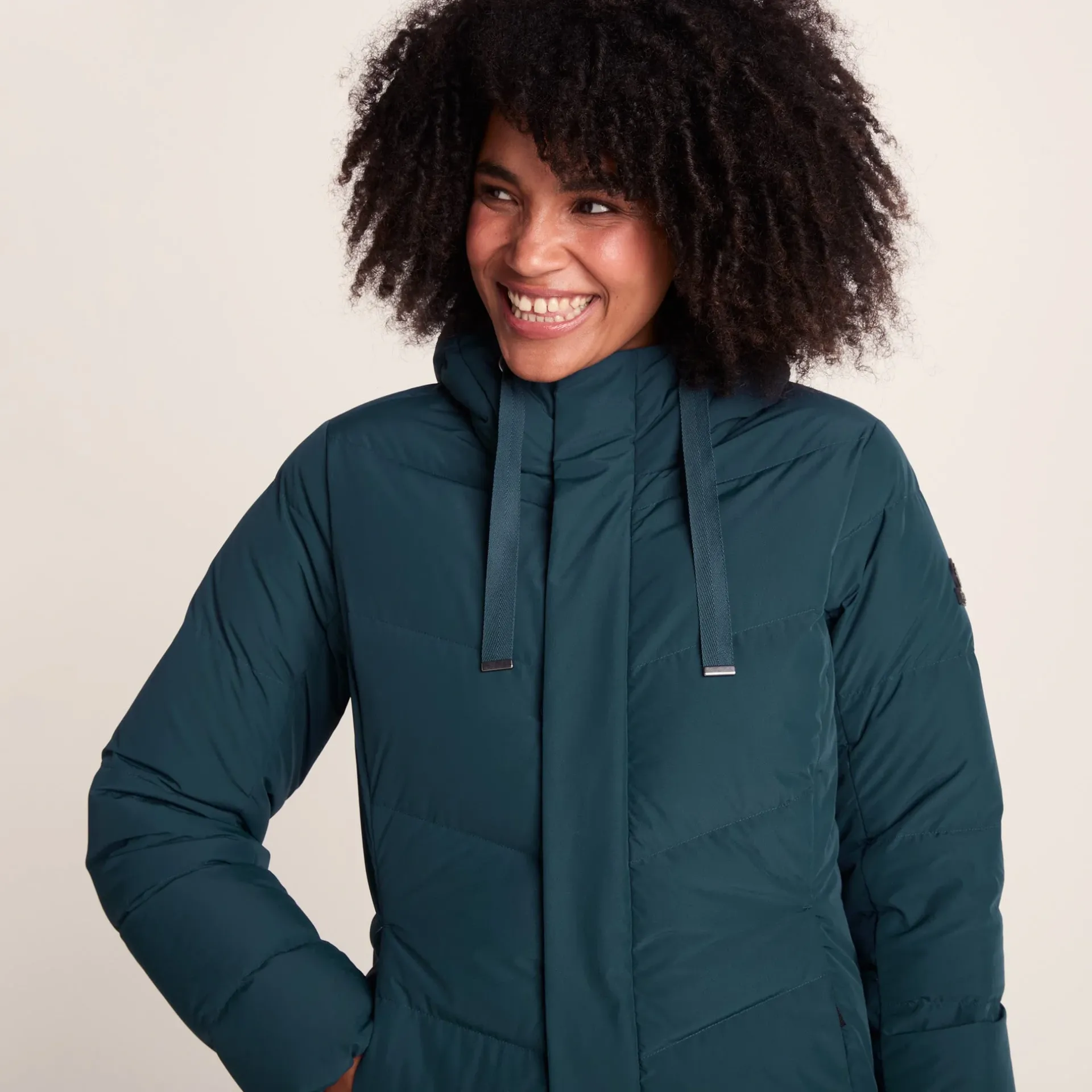 Product DescriptionWhen winter bites, the Raleigh Luxe Long Women’s Down Coat has your back, front, and everything in between. Wrapping you up in a cocoon of warmth, the Raleigh down coat is luxuriously filled with down insulation that’s cleverly concentrated where you need it most: around your body and upper arms. Plus, you can enjoy even more of that premium insulation in the sleeves and hood so you stay perfectly warm without feeling sweaty or overheated.nThe chevron-baffled design doesn’t just keep you toasty – it’s a head-turner too – whether you’re making your way to the office or standing trackside at Cheltenham Races, be prepared for many questions of