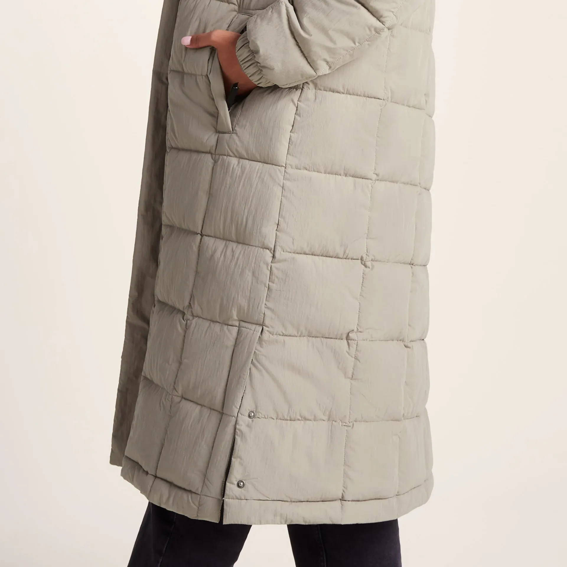 Product DescriptionOn the hunt for the perfect winter coat? The Saga women’s padded coat has you covered – quite literally. Slipping into this jacket is like bundling up in a toasty sleeping bag, giving you that warm, snuggly feeling.nnThe oversized square quilting on this women’s coat is both a strong fashion statement and a strategic way to trap heat precisely where you need it most. A luxurious sherpa lining covers the upper body, wrapping you in the type of warmth that makes braving chilly days feel like a walk in the park.nnWhen the wind picks up, and light rain threatens, you’ll appreciate the water-repellent (DWR) coating on this padded jacket that will keep you dry in light showers. The chunky drawcord hood adjusters mean you can customise the fit so that not even a single cold draught sneaks in, while elasticated cuffs and a two-way zip opening, secured with press studs, offer up triple the protection!nnTwo zip pockets, both lined with soft sherpa, are perfect for warming your cold hands or storFeaturesLight rain protection, wind resistant and warmWater repellent coating (DWR)Square quiltingWarm sherpa lining to upper bodyChunky drawcord hood adjuster2 way zip opening fastened with press studs2 lower zip pocketsElasticated cuffsHem vents with concealed press studsTOG24 embroidery to pocketFitStudio model Narine Dress 6 uk Height 5′ 6½* Bust 32 Waist 24
