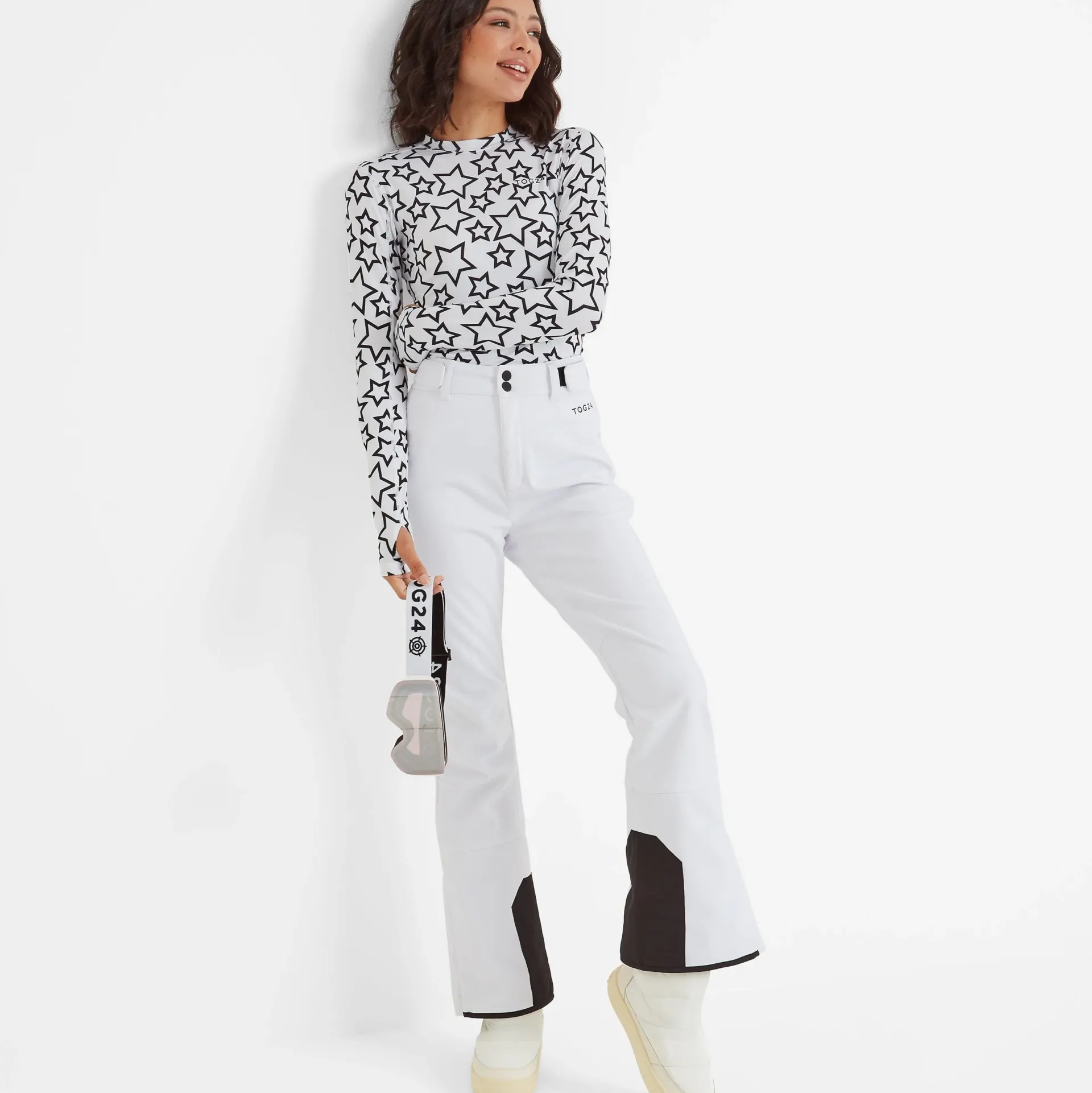 Product DescriptionOur Vista women’s salopettes are a great addition to any winter kit. Designed to withstand moisture and wind, our Vista women’s trousers are great for sunny days out on the slopes or a day of walking in frigid weather. With a lightly flared shape, these salopettes can be easily worn over ski boots and be adjusted at the waist and ankles for an optimum fit. On the outside you’ll find a softshell stretch finish which is lined with a bonded microfleece on the inside for added warmth. Knee darts and a zip opening on the hem allow for extra freedom of movement without the risk of tears, while the inner snow gaiters keep snow from seeping into your boots and onto your thermals.FeaturesWater resistant, Breathable u0026amp; WindproofStretch softshell fabric Microfleece bonded to the insideVelcro adjusters on the waistZip fly with press stud u0026amp; hook and bar fasteningKnee dartsZip vent opening on hemInternal Snow gaitersReinforced durable fabric on inner legsTOG24 print below hip pocketFitStudio model Melissa is wearing size 8 and is 5’10
