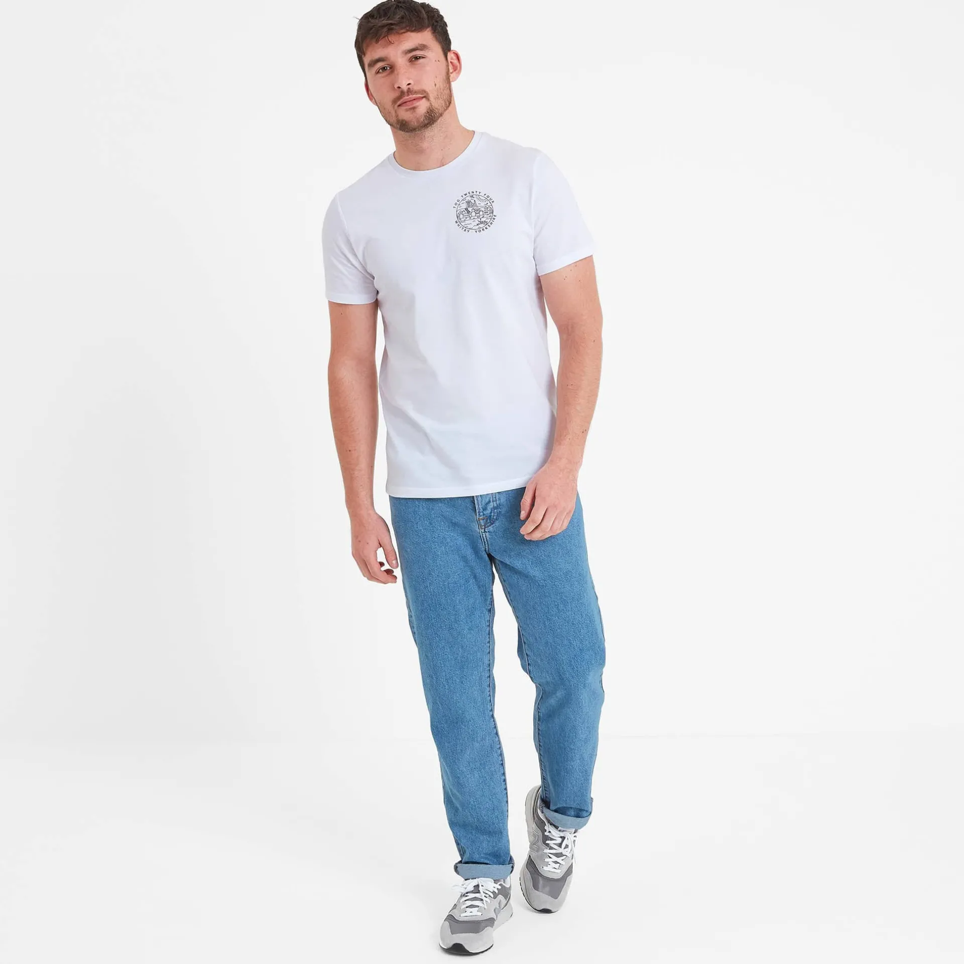 Product DescriptionThe picturesque Yorkshire seaside town is the inspiration for our Whitby men’s crew neck t-shirt. This graphic tee comes in cool and comfy supersoft 100% sustainable cotton and has a comfortable ribbed crew neck, so it feels as good on as it looks. It proudly displays a small graphic on the chest, with a larger version on the back edged with the name of the town and TOG Twenty Four printed in jewel colours.nnWhitby makes the perfect gift for anyone who loves the seaside and it is finished with a small woven TOG24 label on the side seam as a reminder that this t-shirt was proudly designed by our team in West Yorkshire.FeaturesSupersoft 100% sustainable cotton short sleeve teeRib crew neckSmall graphic print on chestLarge graphic print on backWoven label on side seamFitStudio model Joe is wearing size M and is 6’1