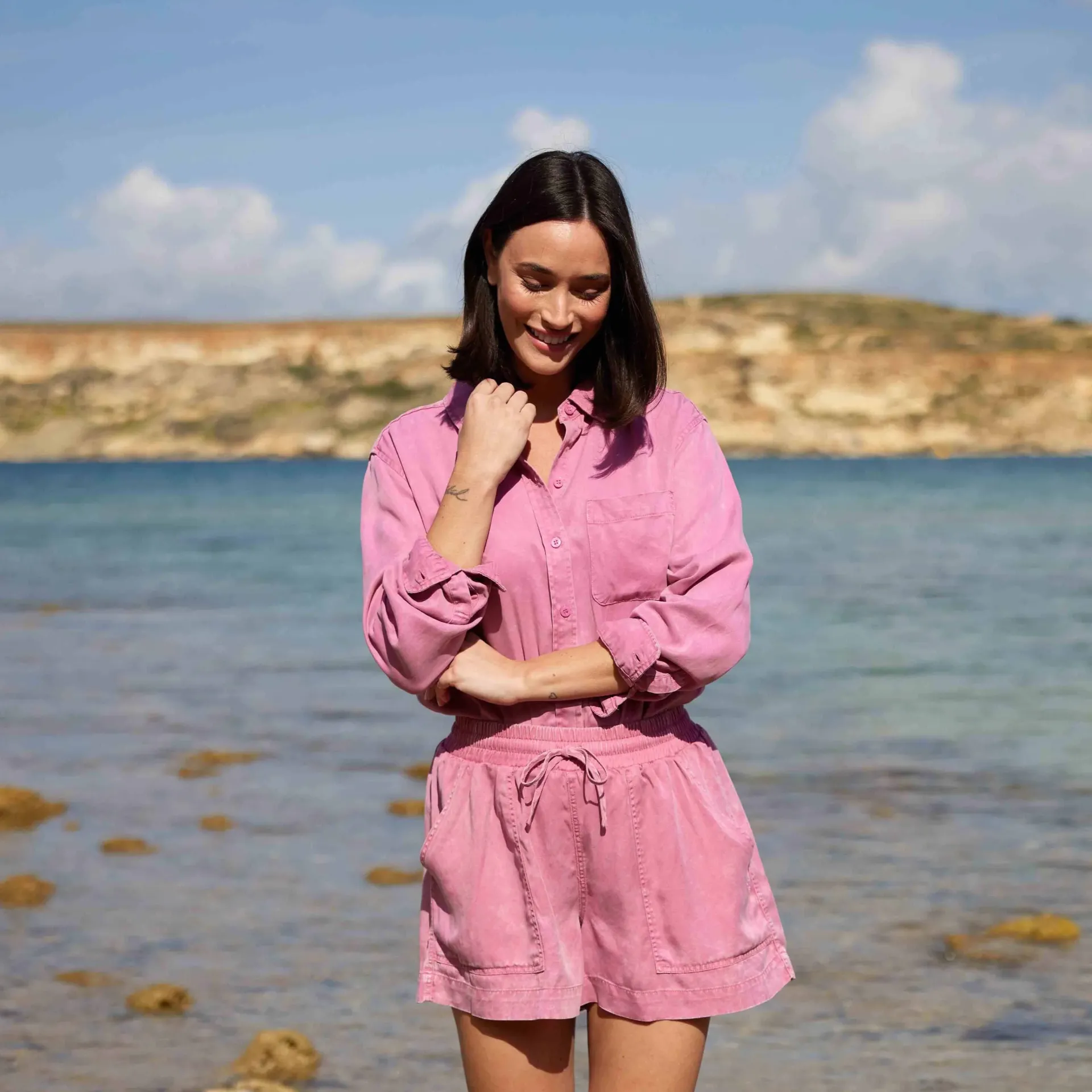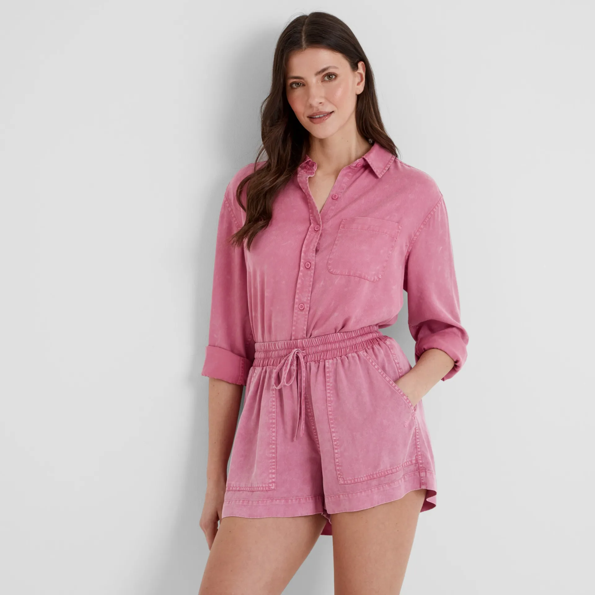 Clearance*This product is excluded from all additional promo code discountsProduct DescriptionThe Irena Shirt is a vibrant take on a wardrobe classic, designed in a striking pink with a soft faded wash. Made from breathable TENCEL™ Lyocell, it offers a drapey, lightweight feel that’s perfect for everyday wear. Featuring pearlised buttons, a chest patch pocket, and a subtle pleat at the back that gives the shirt its structure, it balances casual style with thoughtful details. The curved hem shape at the front and back adds a flattering silhouette, making it easy to wear loose or tucked in. Pair it with light-wash jeans for a fresh daytime look or style it with tailored trousers for a smart-casual outfit. Whether you’re heading out for brunch or relaxing at home, this versatile shirt delivers on comfort and colour.FeaturesTencel™ Lyocell ShirtFaded WashPearlised ButtonsPatch Pocket On The ChestPleat On BackBack YokeCurved Hem ShapePearlised Button To CuffLogo Embroidery Above The HemFitStudio model Mayara Dress 8 UK, Height 5’11