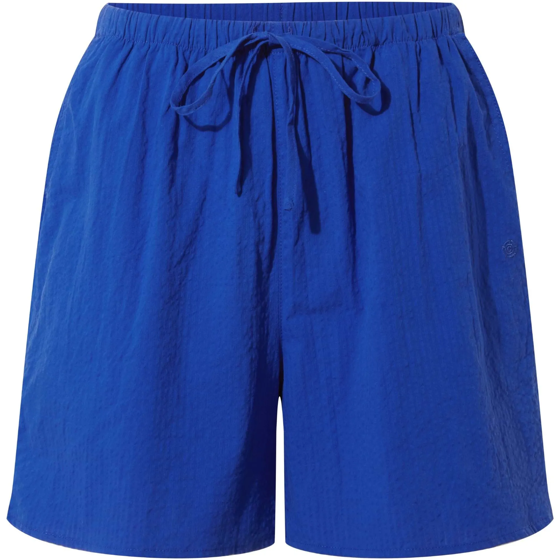 Clearance*This product is excluded from all additional promo code discountsProduct DescriptionThe Jasmine shorts are a must-have for your warm-weather wardrobe this summer. Made from lightweight seersucker fabric that keeps you cool and comfortable on warm, sunny days, these shorts feature a high-waisted, wide-leg fit that creates a really flattering silhouette. The elasticated waistband with adjustable drawcords provides a flexible, comfy fit that moves with you, while two hip pockets add a practical touch for carrying small essentials. Finished with subtle logo embroidery below the pocket, the Jasmine shorts are perfect for lovely walks along the beach or relaxed picnics in the park. Easy, breezy, and just a joy to wear, they’re your go-to for a cool summer look.FeaturesSOFT COTTON FABRICLIGHTWEIGHT SEERSUCKER FABRICELASTICATED WAISTBAND WITH DRAWCORDS2 HIP POCKETSLOGO EMBROIDERY BELOW POCKETFitStudio model Emma Dress 8 UK, Height 5’9