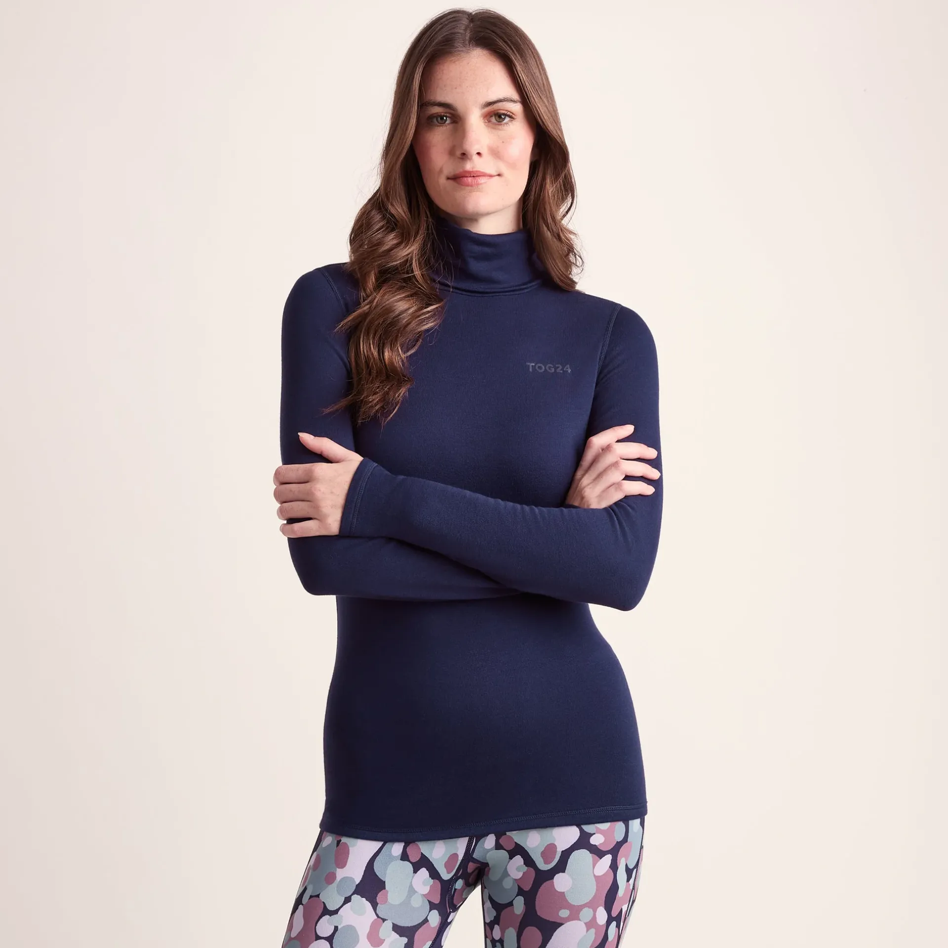 Product DescriptionIdeal for skiers, snowboarders, and those who love a winter hike, our Meru womens roll neck thermal ticks every box. Super breathable, odour resistant, anti-chafe, and buttery soft against the skin, this thermal promises excellent warmth and protection without compromising on look and feel. Super stretchy, this Meru roll neck thermal can easily be thrown on to be worn under your fleeces or winter jackets with ease. It is perfect for active lovers of the great outdoors who need a chic yet reliable base layer to perform where it counts.FeaturesSuper soft u0026amp; stretchy roll neck base layerBreathable u0026amp; lightweightQuick wicking u0026amp; odour eliminatingAnti chafe seamsTOG24 print on the chestFitStudio model Gina Dress 8/10 uk Height 5’11* Bust 34c Waist 26.5