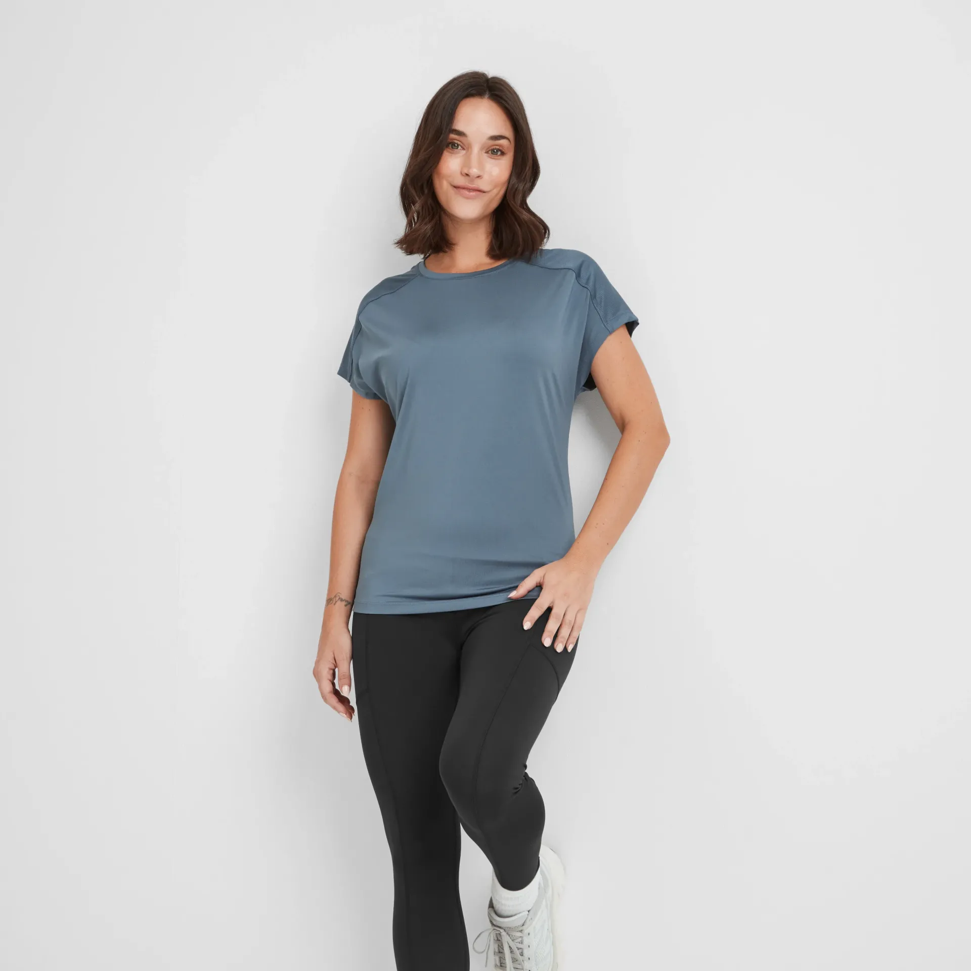 Clearance*This product is excluded from all additional promo code discountsProduct DescriptionThe Moorley tech top is all about keeping up with your active lifestyle, keeping you comfy and cool throughout. Made from lightweight, breathable fabric with 4-way stretch, it’s designed to move with you – perfect for a gym session, or a quick coffee run. The relaxed dolman sleeves give it a laid-back vibe (great for that off-the-shoulder slouchy look), while the mesh panels on the front and back help you stay cool when things heat up. Curved seam details add a flattering shape, and the TOG24 logo on the back shows its quality. It’s the sports top you’ll find yourself grabbing for pretty much any casual, active occasion.FeaturesLightweight u0026amp; Breathable4-Way StretchQuick WickingDolman SleevesCurved Seam DetailsTog24 Print To The BackDropped HemMesh Panels To Front u0026amp; BackFitStudio model Georgia Dress 8 UK, Height 5’10