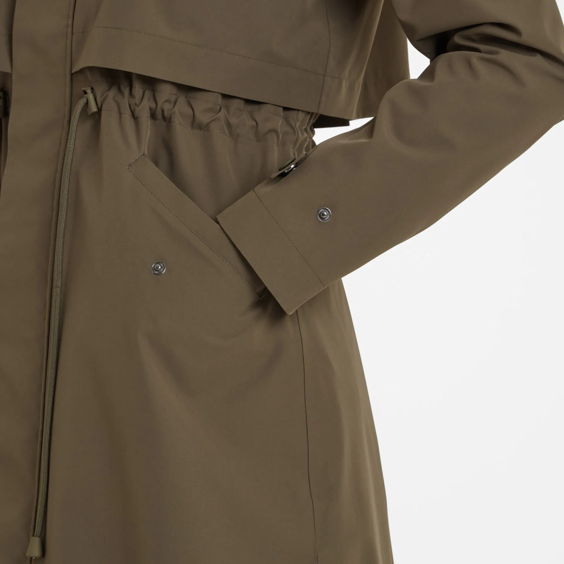 Product DescriptionWhen it comes to waterproof jackets, it doesnât get much more stylish than the Alva. Designed in the classic trench-coat silhouette, the Alva is a great looking coat that also comes with heaps of practical features. Its fully taped seams and waterproof coating ensures you keep the rain out and the warmth in, which is ideal for when the rain pours and the winds blow. Also, to ensure youâre ready for whatever the weather throws at you, the removable and adjustable hood comes complete with drawcords at the opening, while the handy two-way zip provides extra mobility. Whatâs more, the toggle adjusters on the waist offer that âcinched-inâ feel, which is both figure-flattering and great for keeping your torso toasty. With style and substance in abundance, the Alva is your trusty companion for keeping you dry and stylish in the unpredictable British weather.FeaturesWaterproof (10K), breathable (10K), and windproofFully taped seamsWater repellent coating (DWR)2 way zip opening fastened with concealed press studsRemovable hood with drawcords on hood openingToggle adjusters on waist2 lower patch pockets with press stud fasteningsPress stud cuff adjustersHem vent with concealed press studsTOG24 badge on sleeveFitStudio model Natasha is wearing size 8 and is 5’10