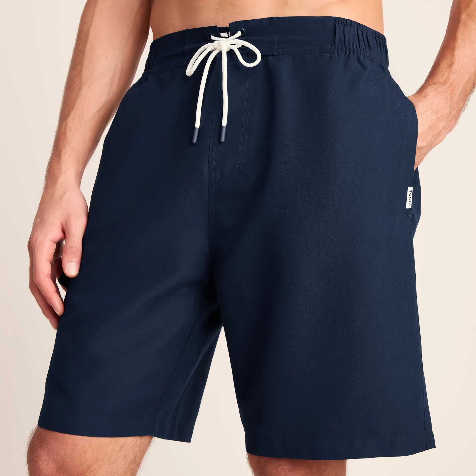Product DescriptionOur Aslan men’s swim shorts are made from 100% recycled polyester fabric, helping you to make a sustainable choice with your swimwear whilst still looking great. Equipped with an elasticated waistband with drawcord you can be sure of a comfortable fit. Featuring an inner mesh brief, two hip pockets, one patch pocket on the leg and one back pocket, they blend comfort and style.FeaturesMade from 100% recycled polyester fabricElasticated waistband with non-functional drawcord detailInner mesh brief2 hip pockets, 1 patch pocket on leg u0026amp; 1 back pocketTOG24 label on pocket openingFitStudio model Tyler is wearing size M and is 6’4